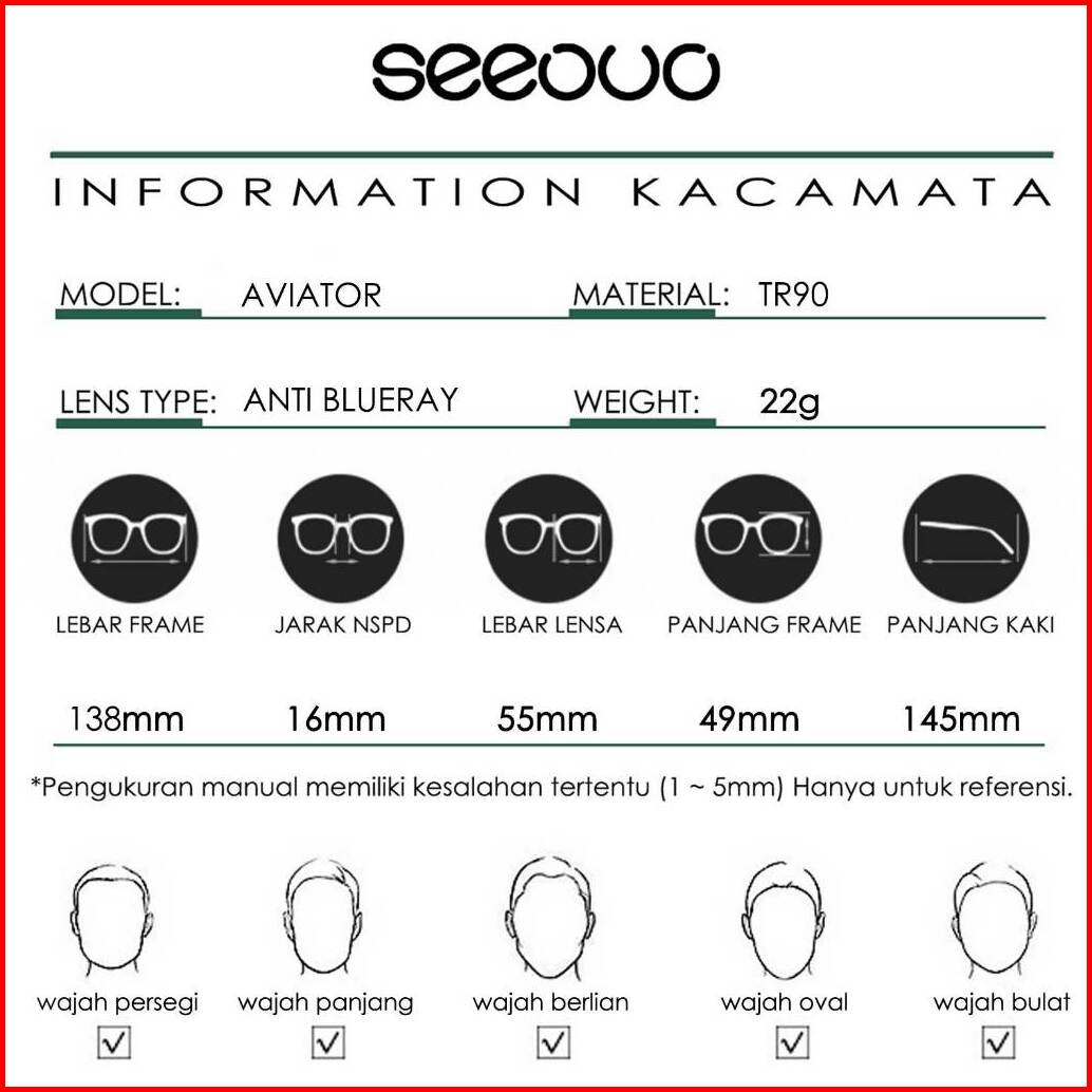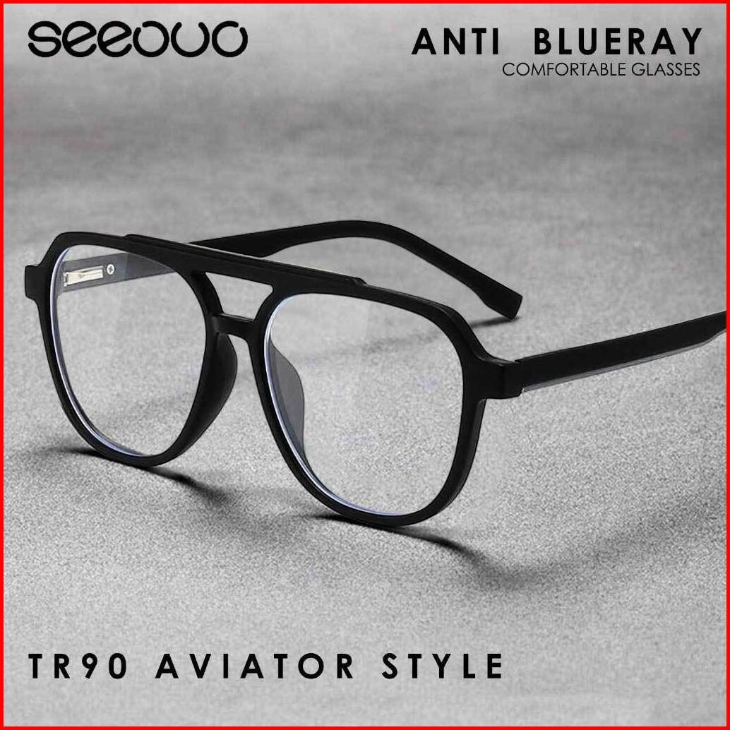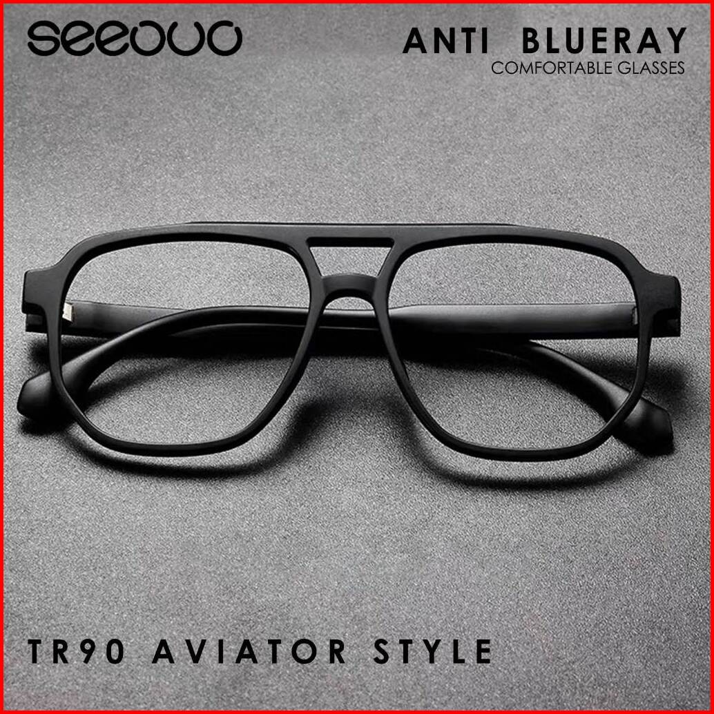 Seeouo Kacamata Antiradiasi Blueray Kotak Aviator Bahan Tr90 Fashion Pria Wanita Stylish Bisa Minus Anti Radiasi Bluecro