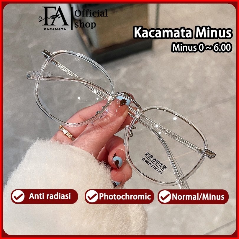 Fomamata Kacamata Minus Logam Tr90 Wanita Bingkai Bulat Anti Radiasi Fashion Photocromic