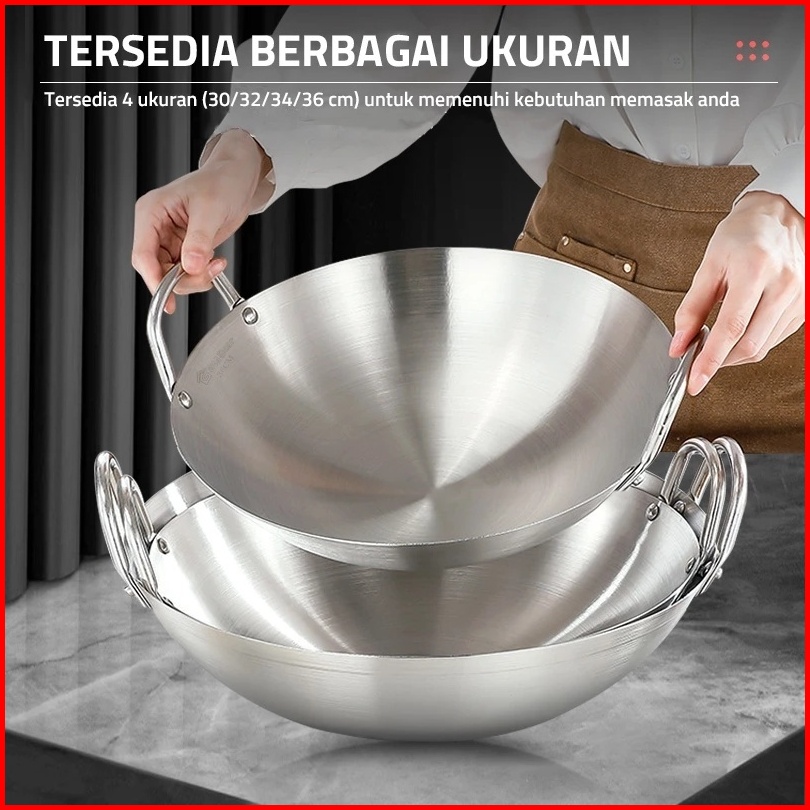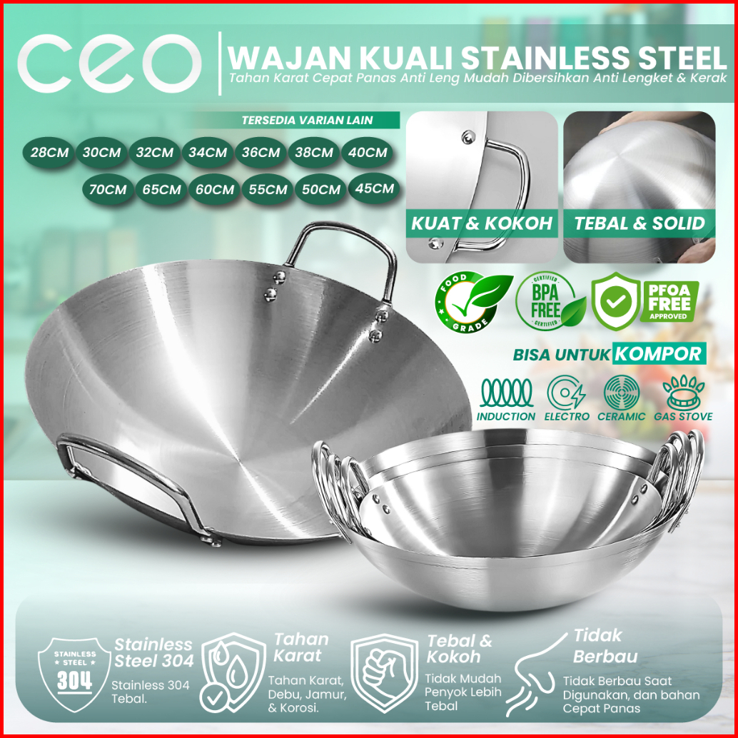 Ceo Wajan Stainless Steel Anti Lengket Penggorengan Tebal Kuali Premium Katel Dengan Pegangan
