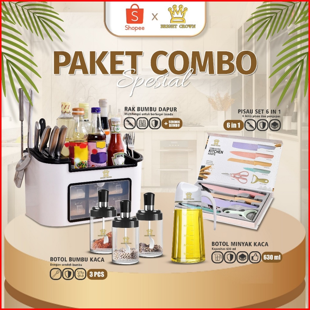 Bright Crown Paket Bundling Rak Bumbu Dapur Free 6 Pcs Sendok Pisau Botol Minyak Botol Bumbu