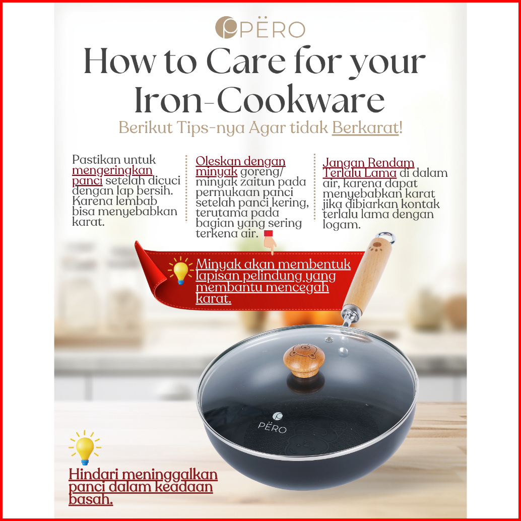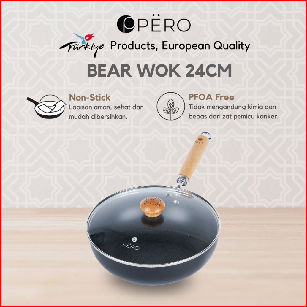 Pero Bear Wok Pan Iron Black With Lid 20cm 24cm Wok Pan Wajan Penggorengan Deep Frying Ukuran 20cm 24cm Dengan Tutup Kac