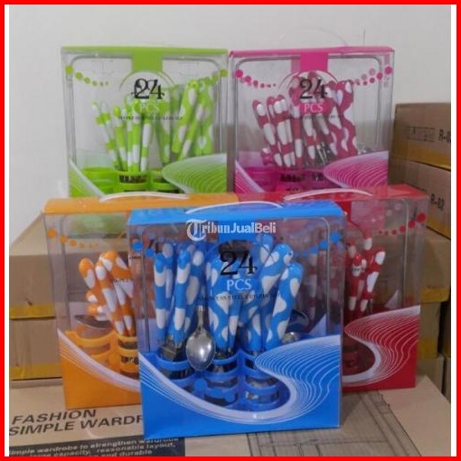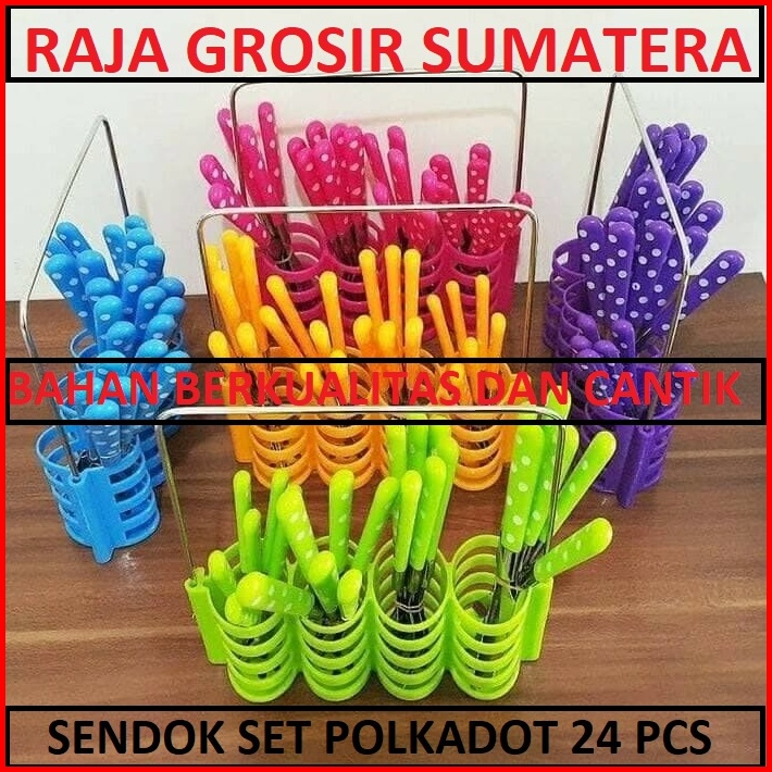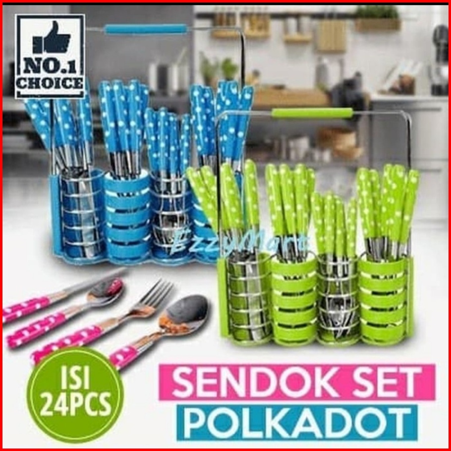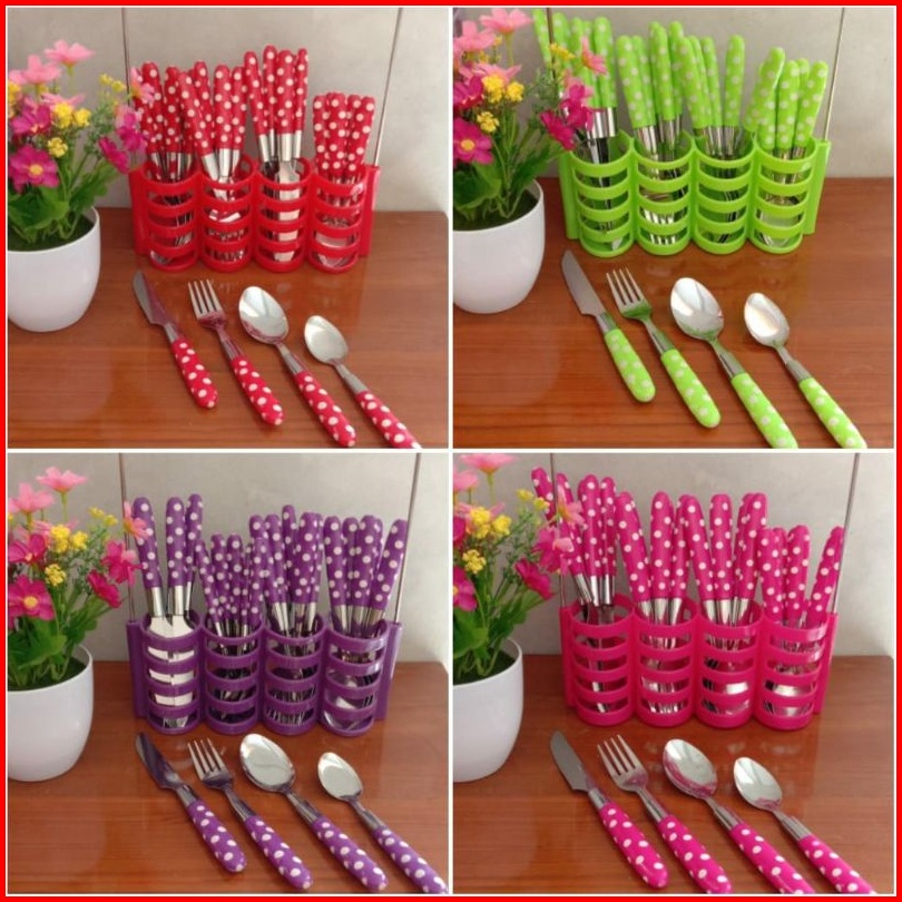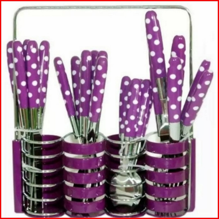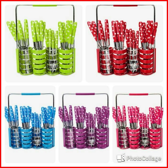 Tempat Alat Makan Polkadot Sendok Garpu Pisau 24 In 1 Cutlery Set Rak Keranjang Peralatan Dapur Makan