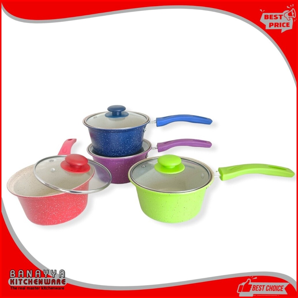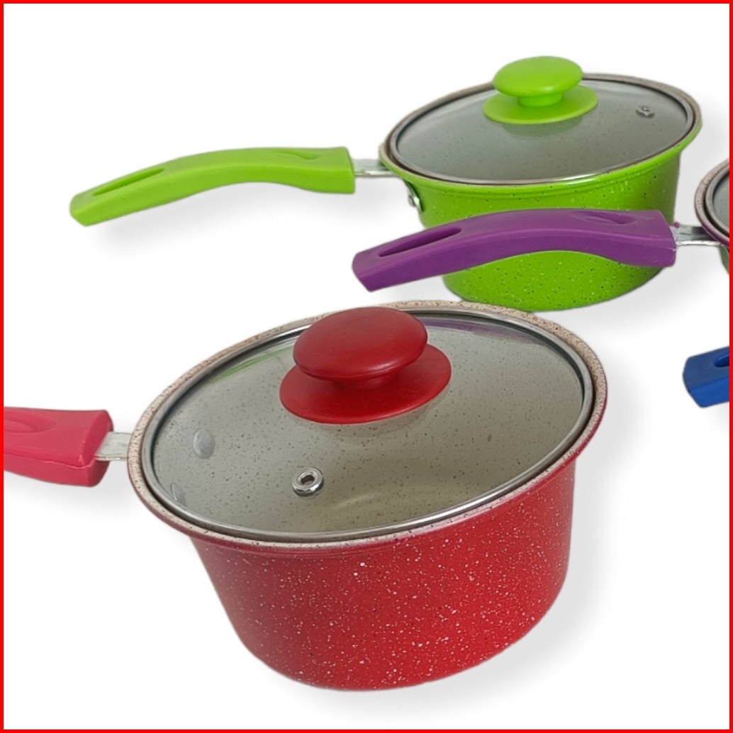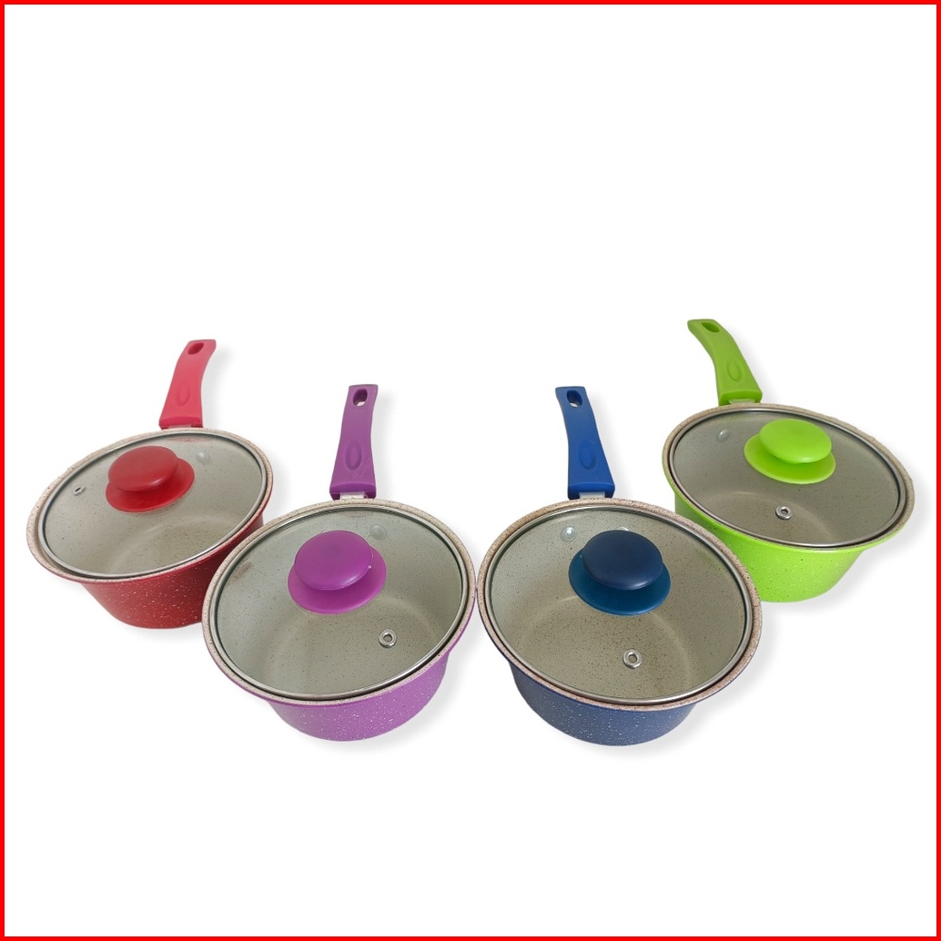 Milk Pan Panci Susu Enamel Warna Tutup Kaca Premium Ukuran 16cm