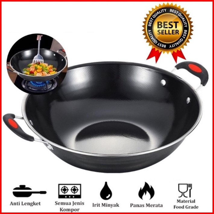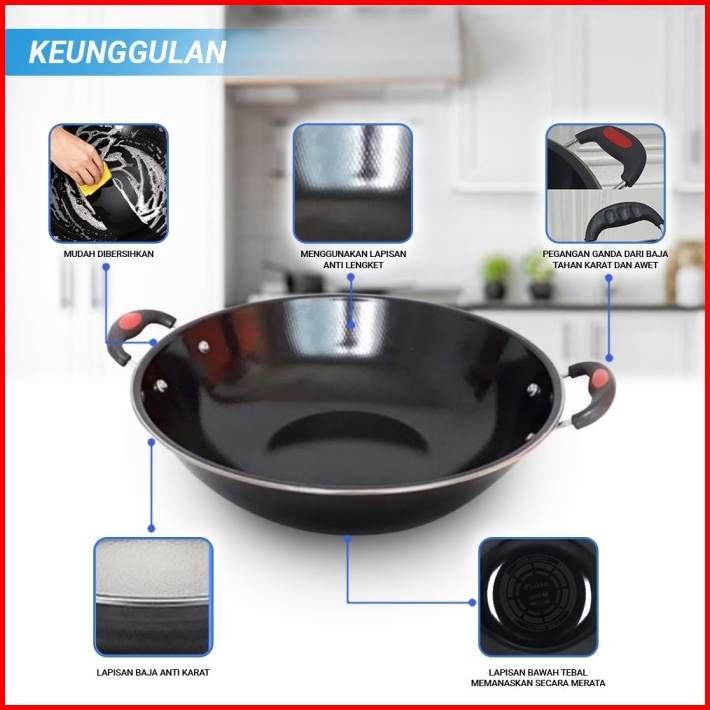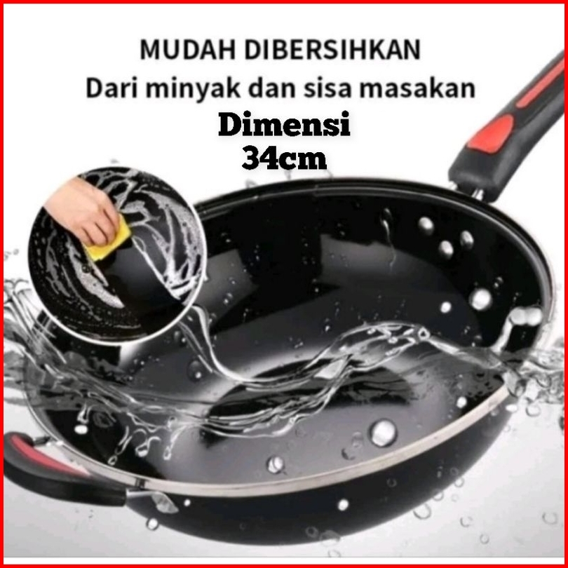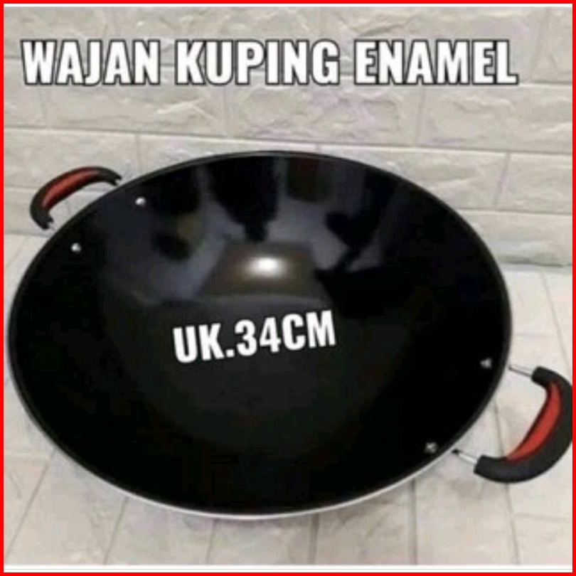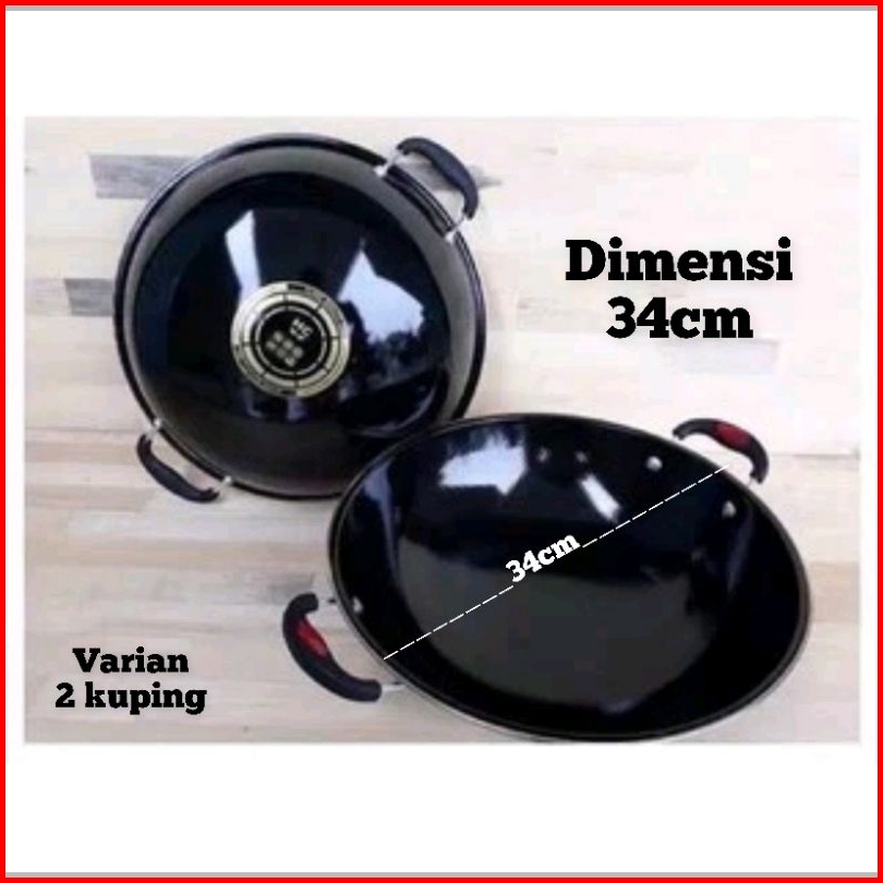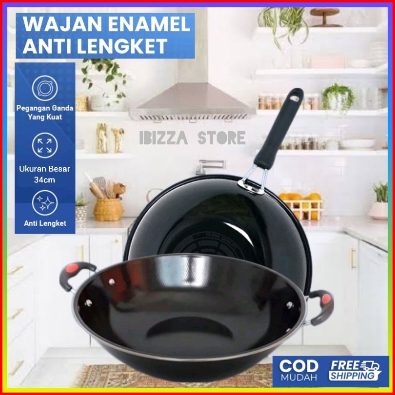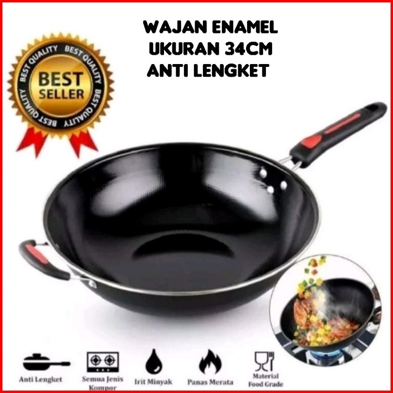 Wajan Enamel Panci 34cm Hitam Kuping Gagang Panjang Wajan Anti Lengket Anti Gores