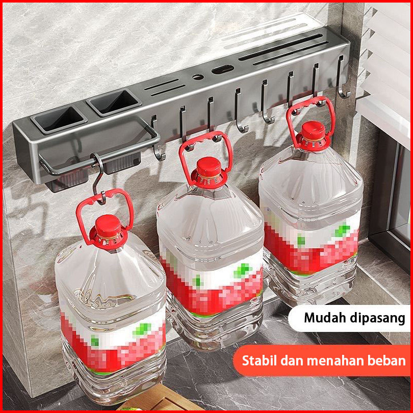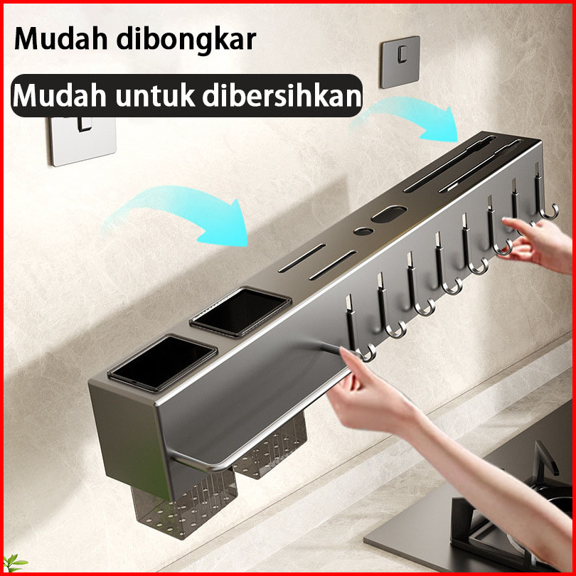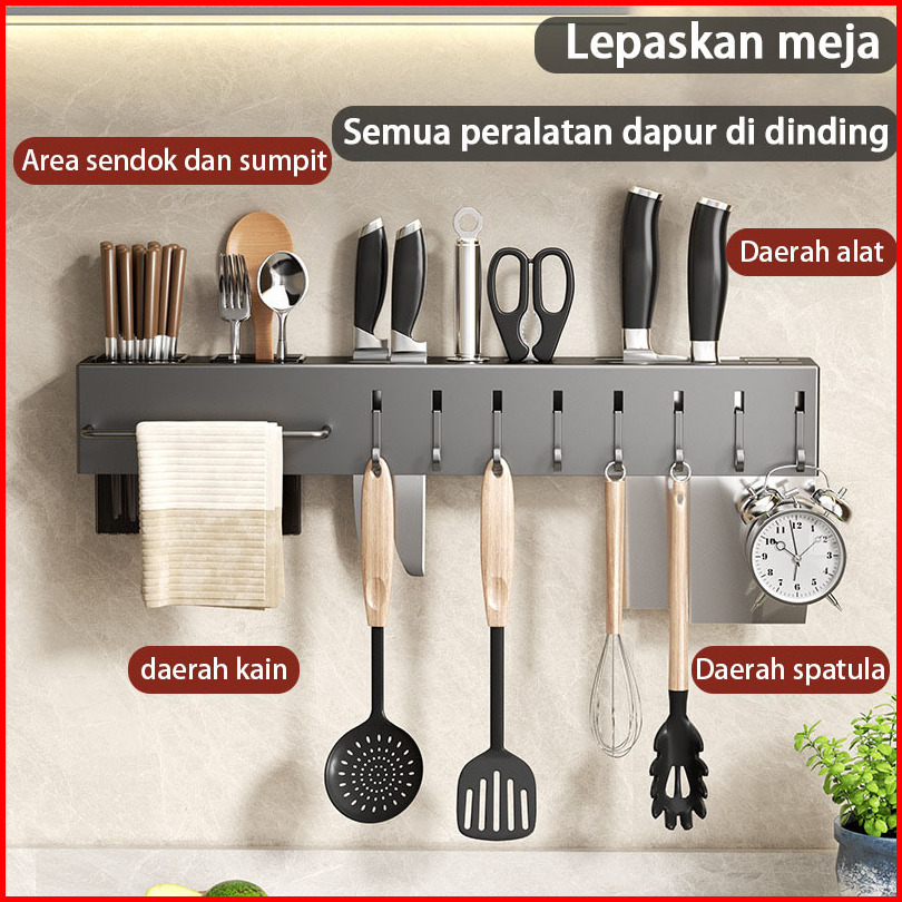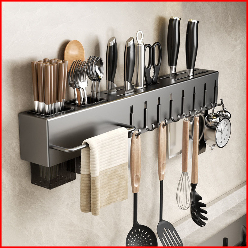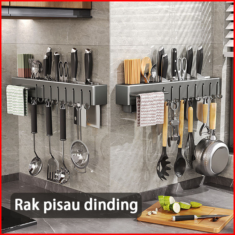 Rak Pisau Dinding Dapur Stainless Steel Tempat Taruh Sendok Garpu Pisau Dapur Gantungan Lap Dapur Rak Tempel Tanpa Bor