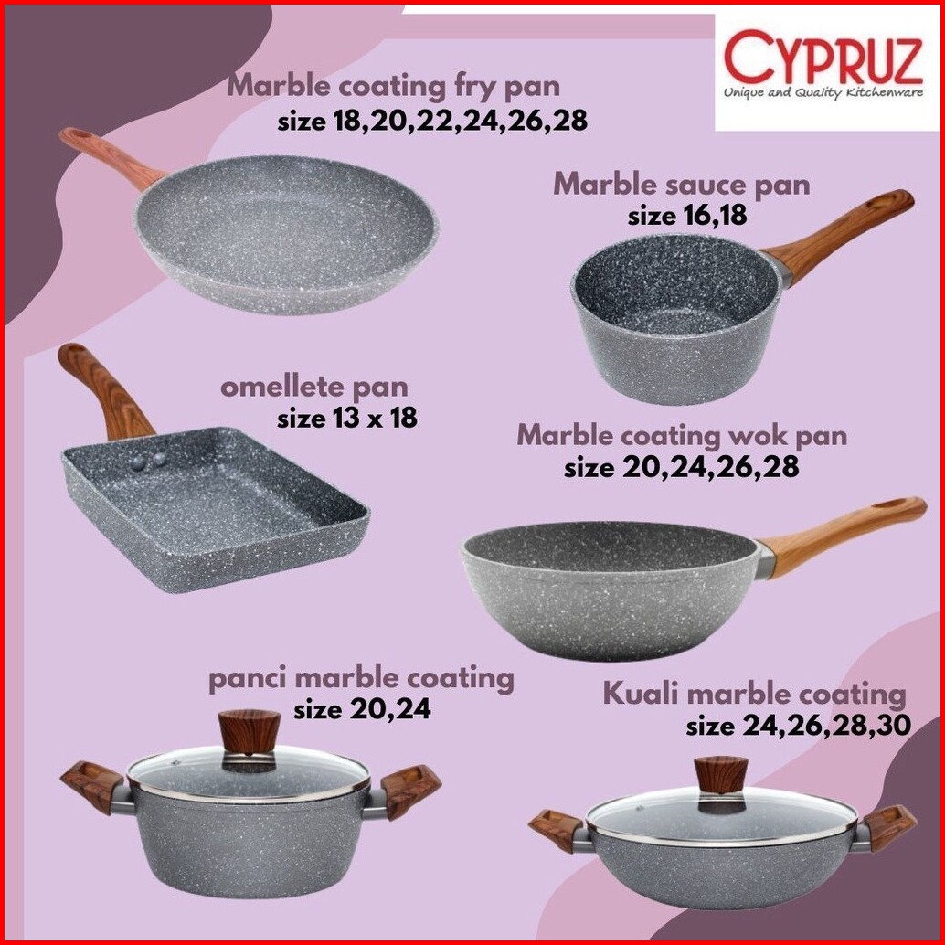 Cypruz Marble Variasi Frypan Saucepan Fry Wok Panci Kuali Wajan Anti Lengket Cookware