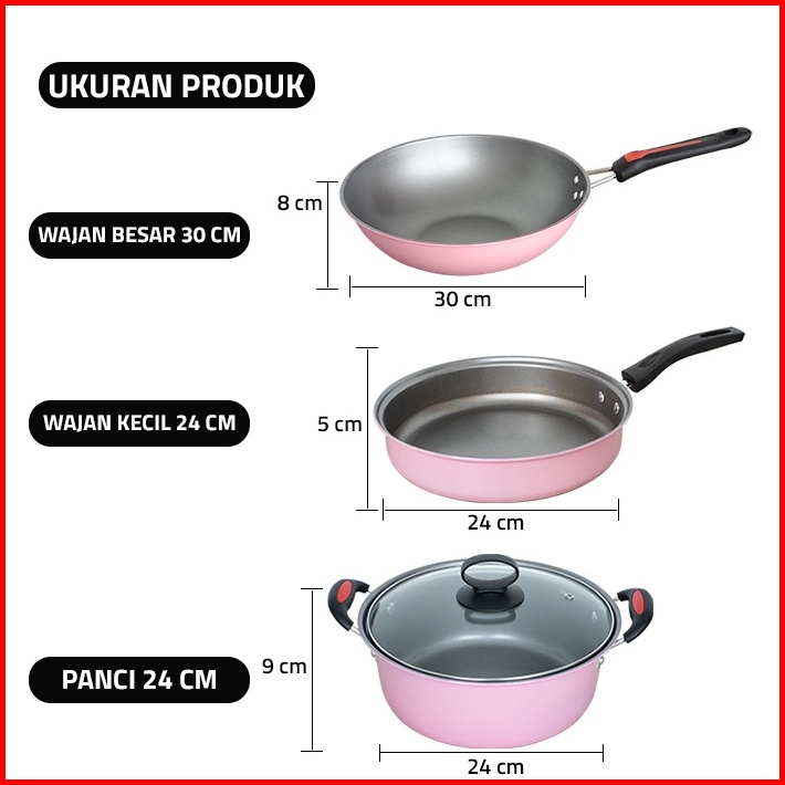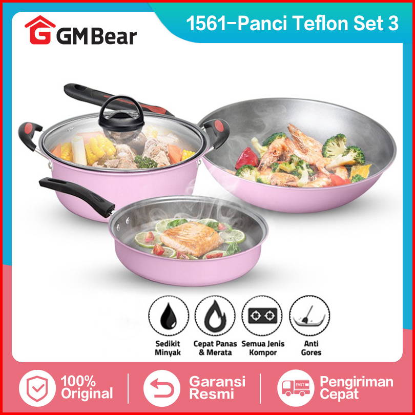 Gm Bear Panci Wajan Set 3 Pcs 1561 - Arria Panci Penggorengan Set Pink