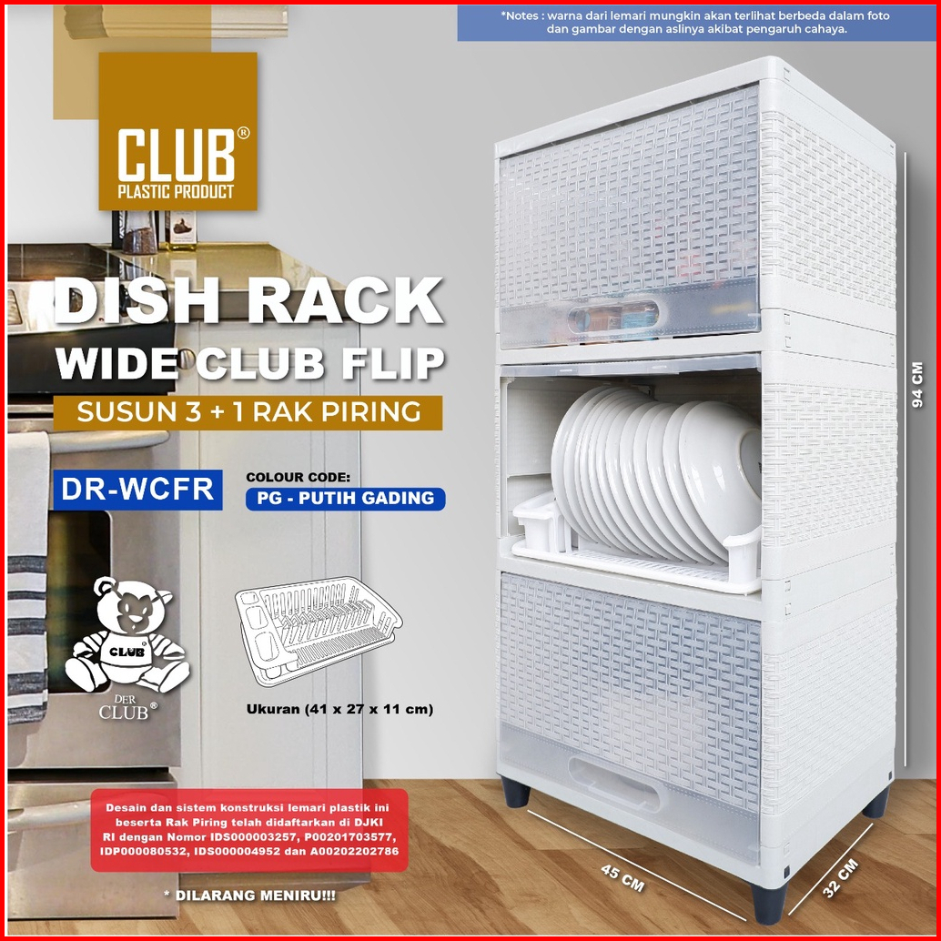 Rak Piring Plastik Dish Rack Wide Club Flip 1 2 3 Dan 4 Susun