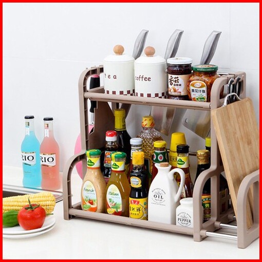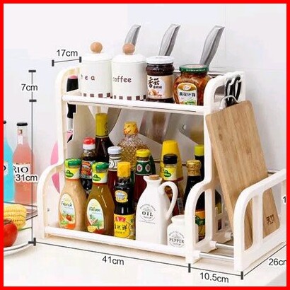 7004 Rak Bumbu Dapur 2 Susun Plastik Tempat Gantungan Spatula Dan Pisau Dapur Tempat Talenan