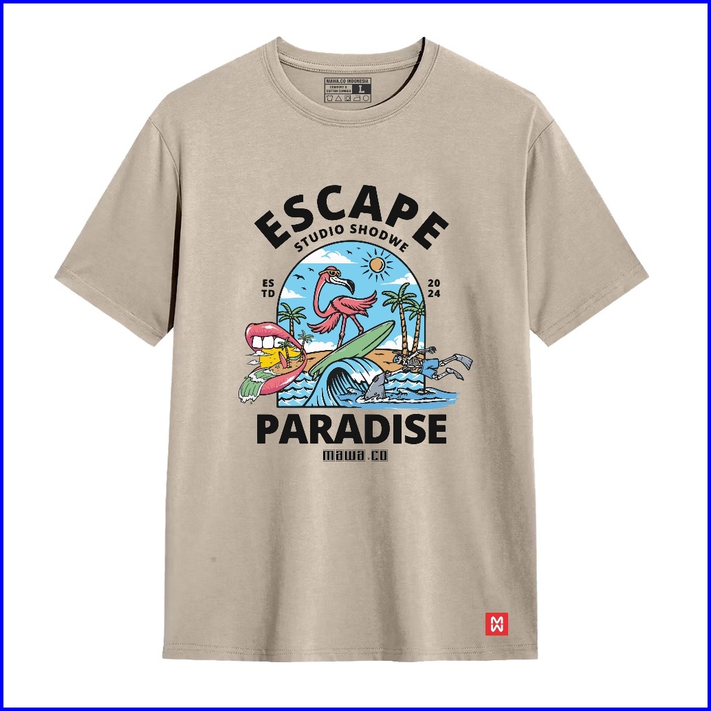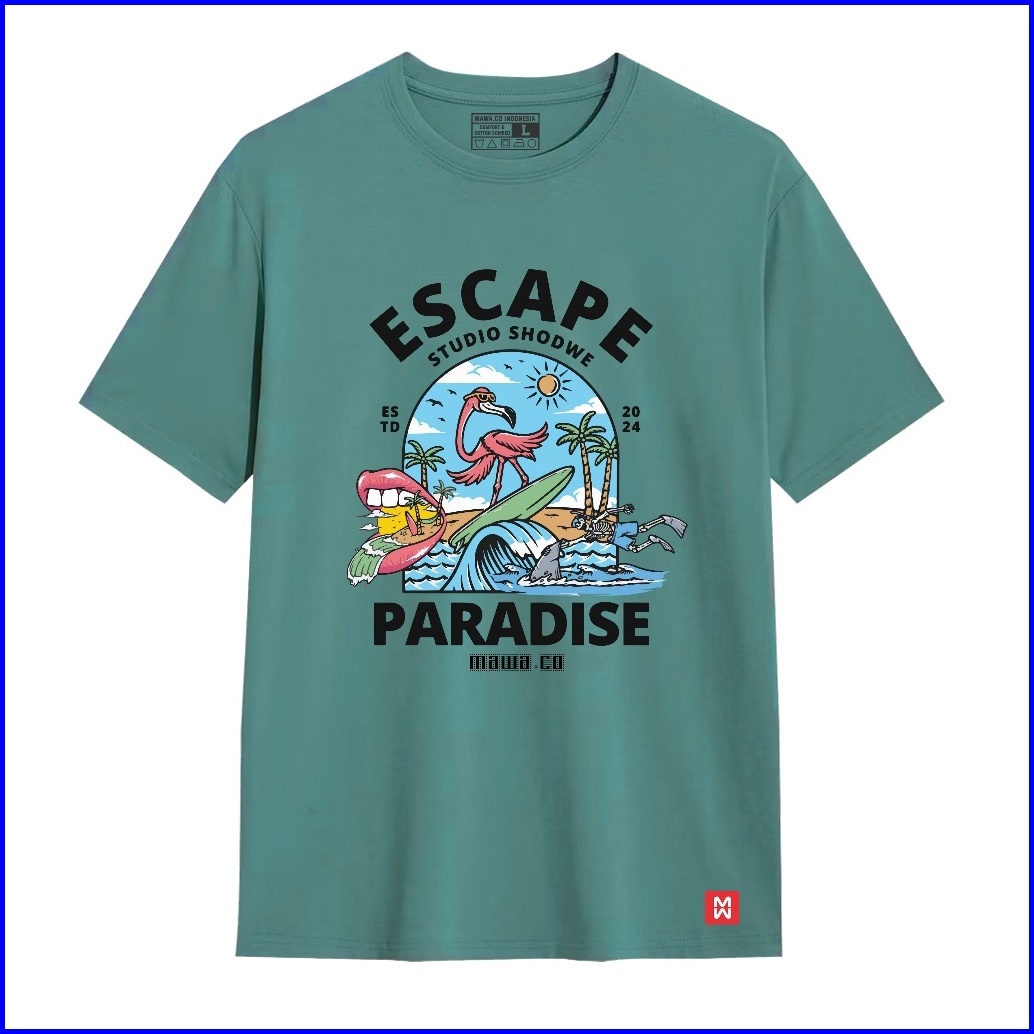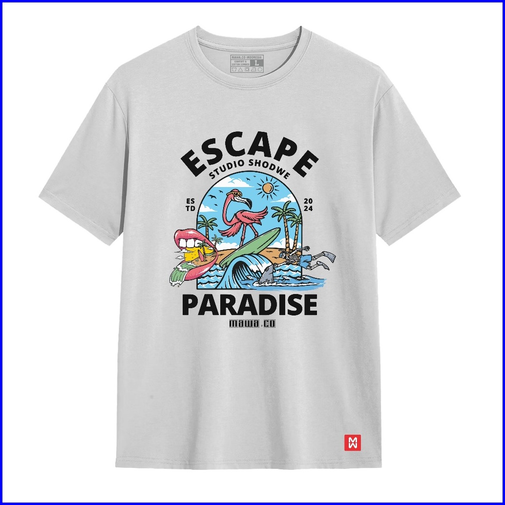 Mawa.co - T Shirt Escape Paradise Kaos Distro Lengan Pendek Baju