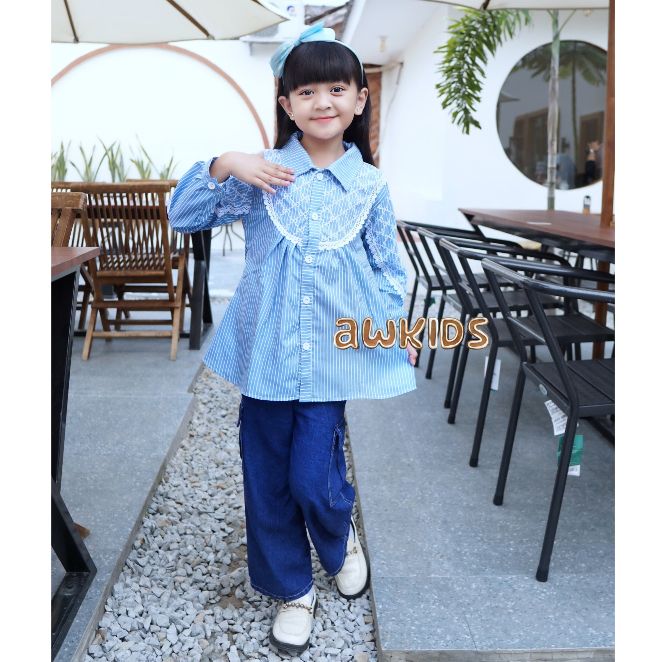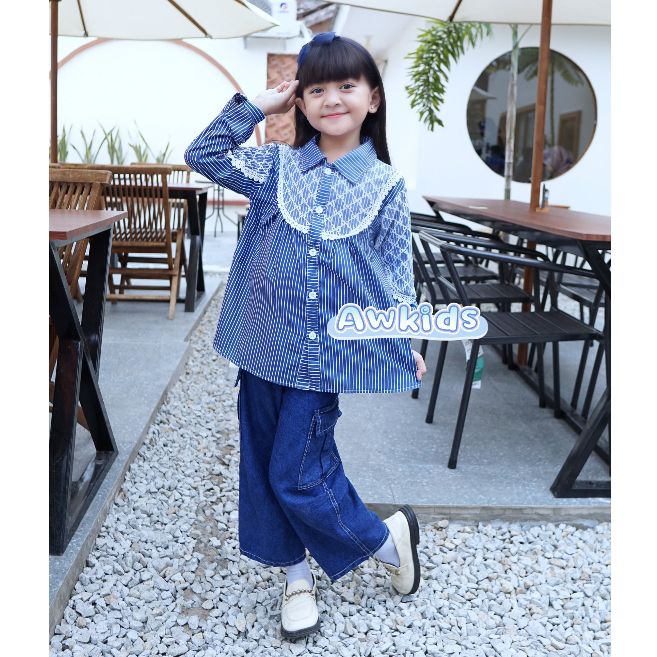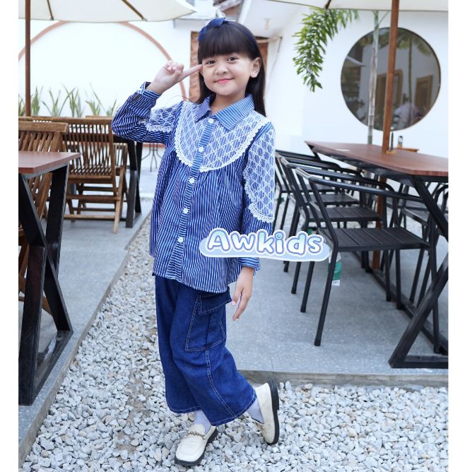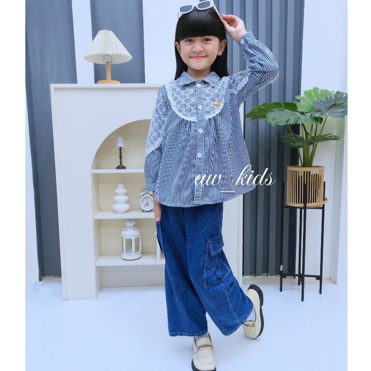 Setelan anak perempuan tanggung usia 3 4 5 6 7 8 9 10 11 12 stelan baju dan celana jeans set fashion terbaru