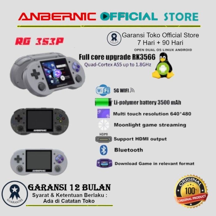 ANBERNIC RG353P Handheld Game Console Retro Dual OS Android Linux - Black Transpara