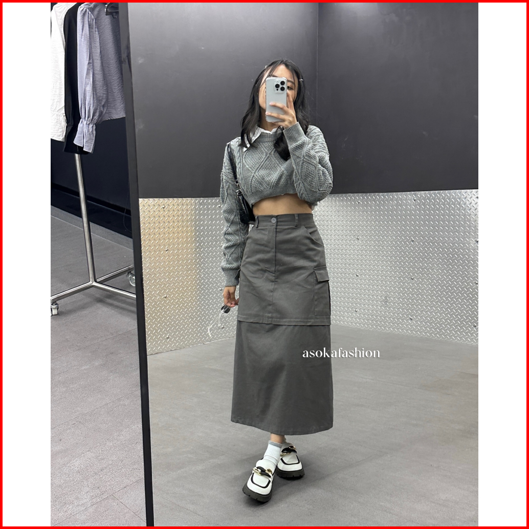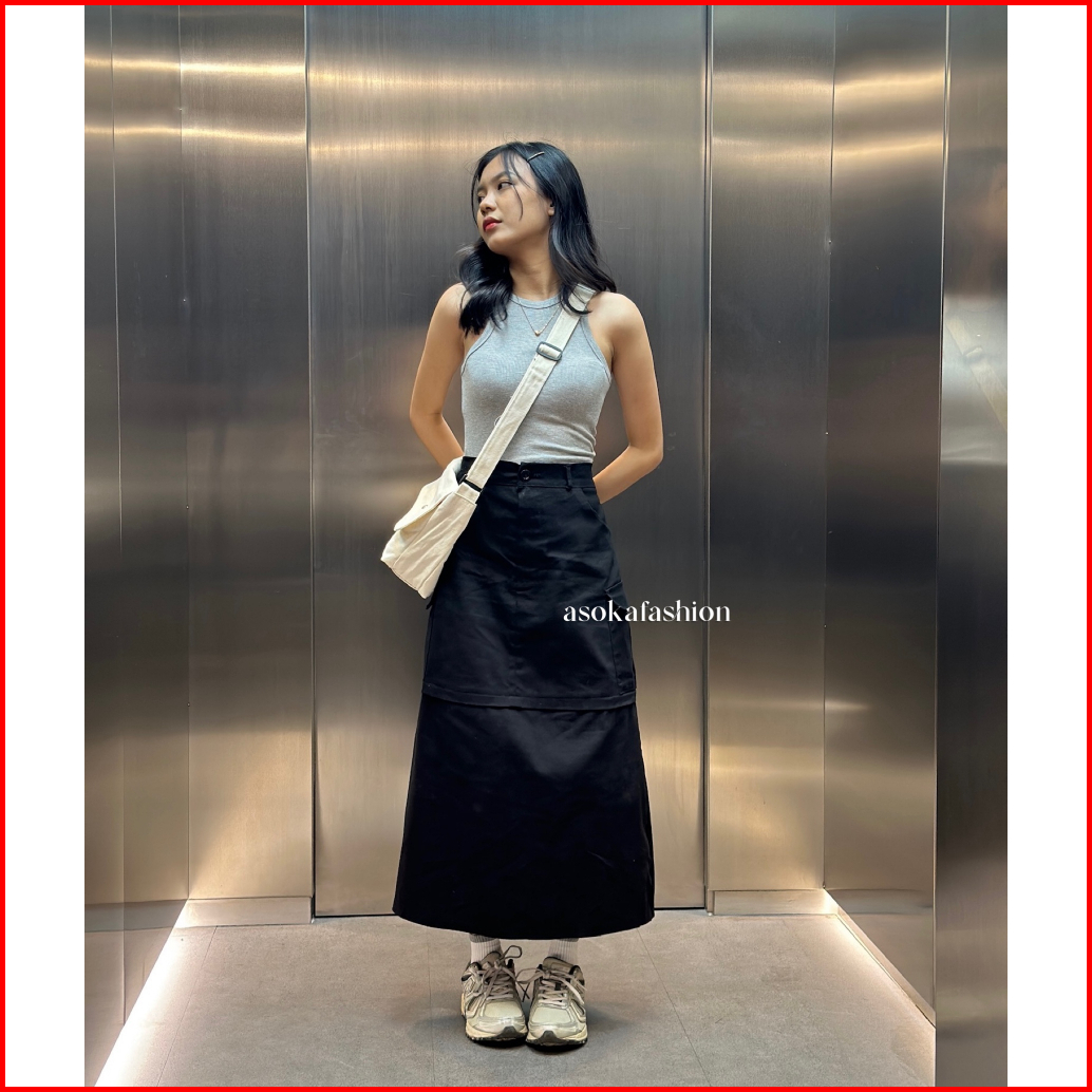 Asoka Jacob Skirt 2187 - Rok Cargo Bawahan Wanita - Casual A-line Skirt Chinos