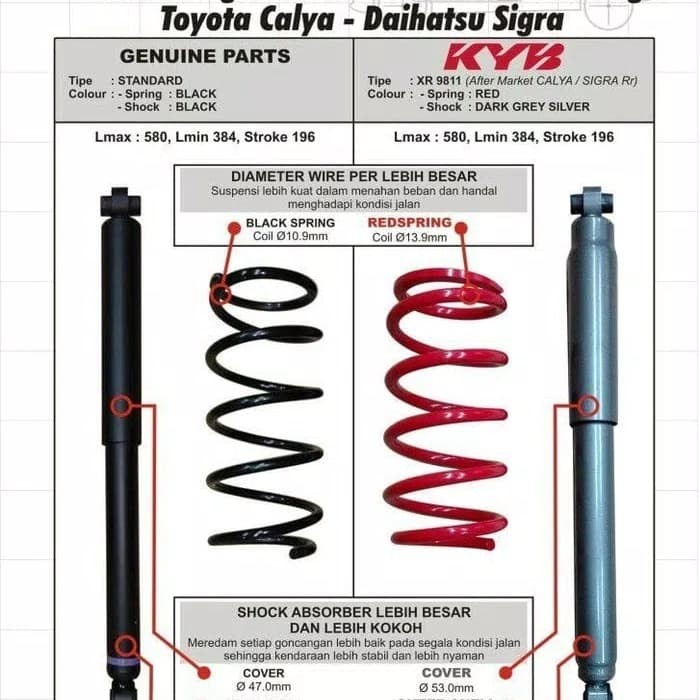 PAKET PER KEONG / SHOCK BREAKER MERK KAYABA ULTRA TOYOTA CALYA / SIGRA BELAKANG