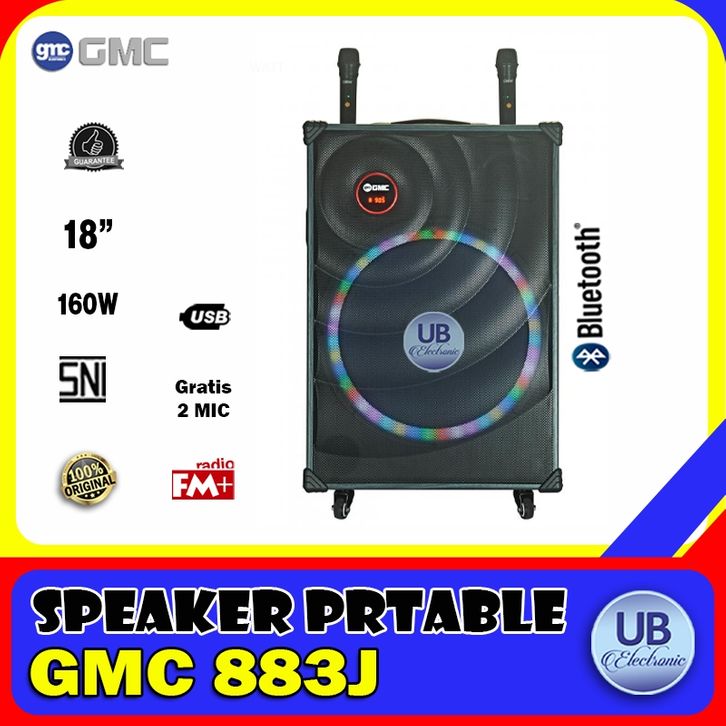 SPEAKER PORTABLE GMC 883J 18 INCH BLUETOOTH SPEAKER AKTIF KARAOKE WIRELESS SUBWOOFER BASS POWERFUL