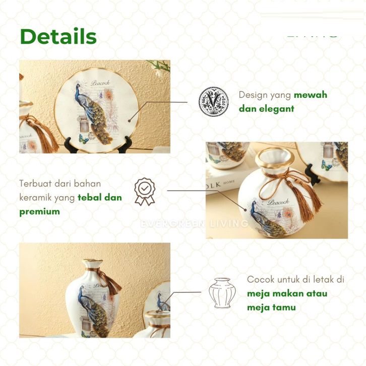 Dekorasi Vas Bunga Blossom Putih Eropa Retro Set 3 PCS - Pajangan Hiasan 3IN1 Decor Klasik / Dekor Ruangan Rumah