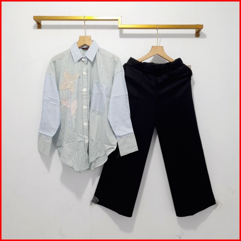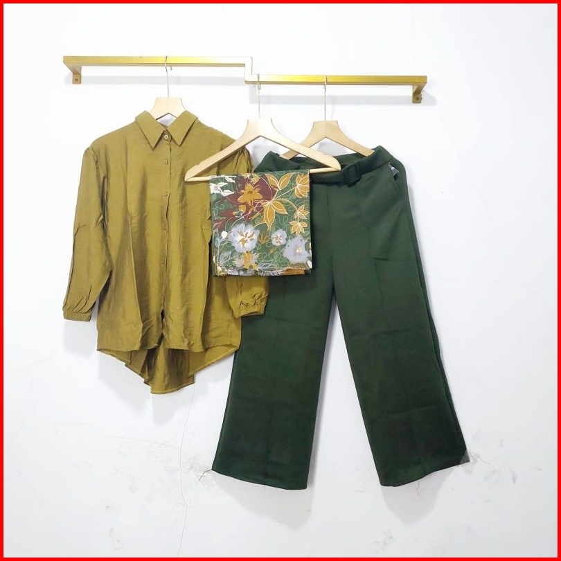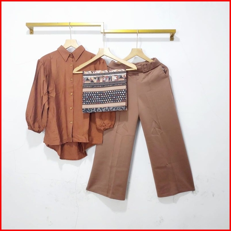 Set Cel Girls Viral Polo Linen Twill Premium Set Atasan Katun Dan Polo Linen Kulot Scuba
