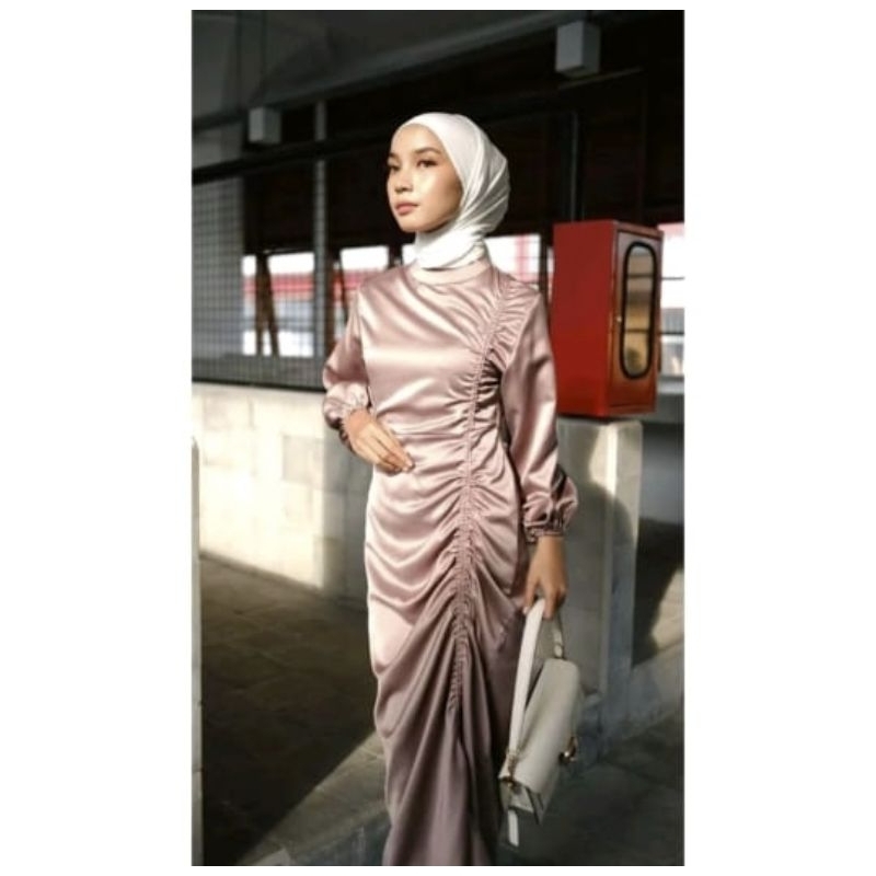 (Gratis Ongkir) Gamis adini satin pemium //silk dres satin premium velvet //Dress muslim wanita//Outfit Dress kondangan