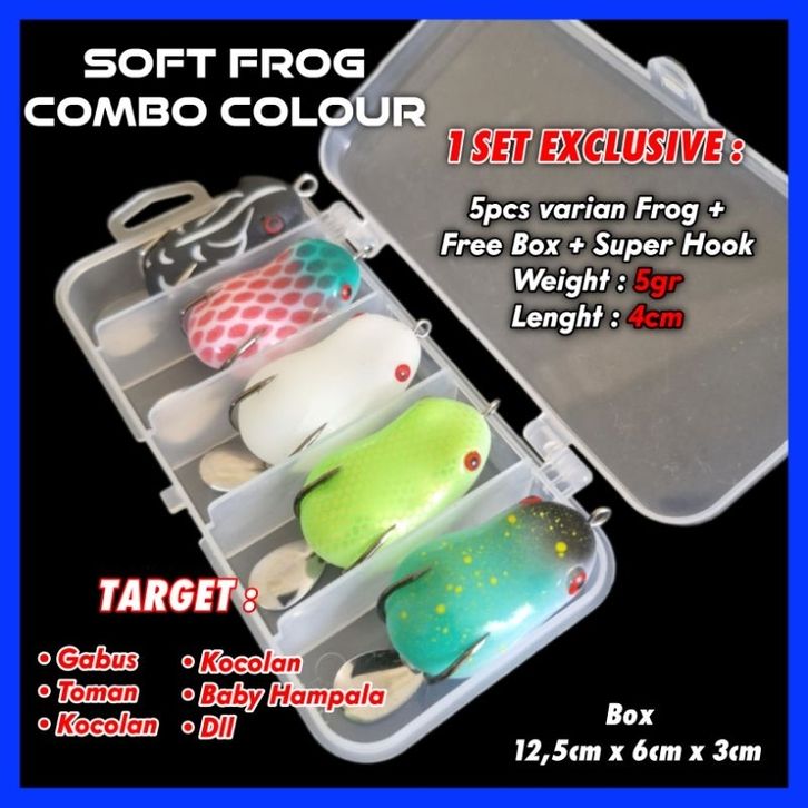 Umpan Casting Casting Umpan SOFT FROG Combo Colour isi 5pcs ukuran 4cm umpan mancing casting ikan Gabus, Hampala, Toman