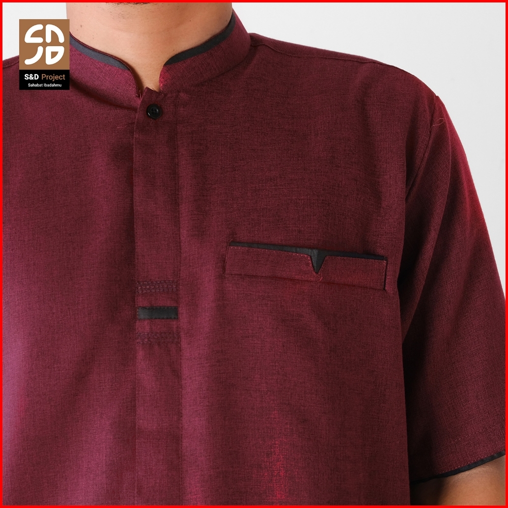 S D Project Baju Koko Katun Madinah Polos Lengan Pendek Ukuran M L Xl 2xl 3xl 4xl - Warna Marun