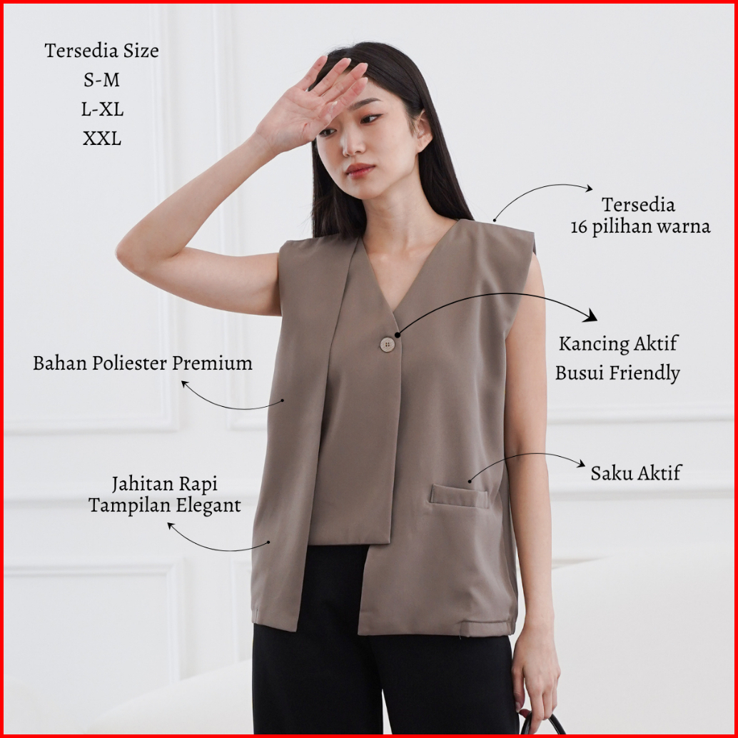 Styluna - Hanny Outer Rompi Vest Atasan Luaran Wanita Oversized Korean Style Sleeveless Top V4