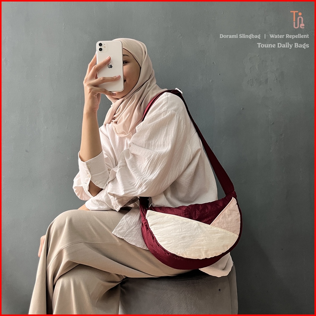 Toune Dorami Slingbag Tas Selempang Nilon Tas Wanita Tahan Air Halfmoon Bag