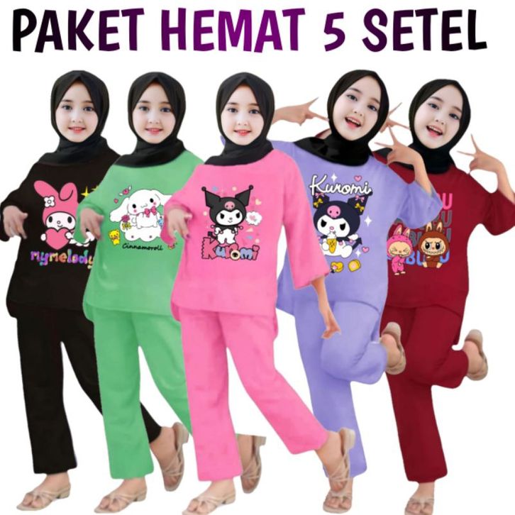 5 Pcs Setelan Anak Kekinian Usia 2-12 Thn (SET Pinguin Paket 5 Pcs)