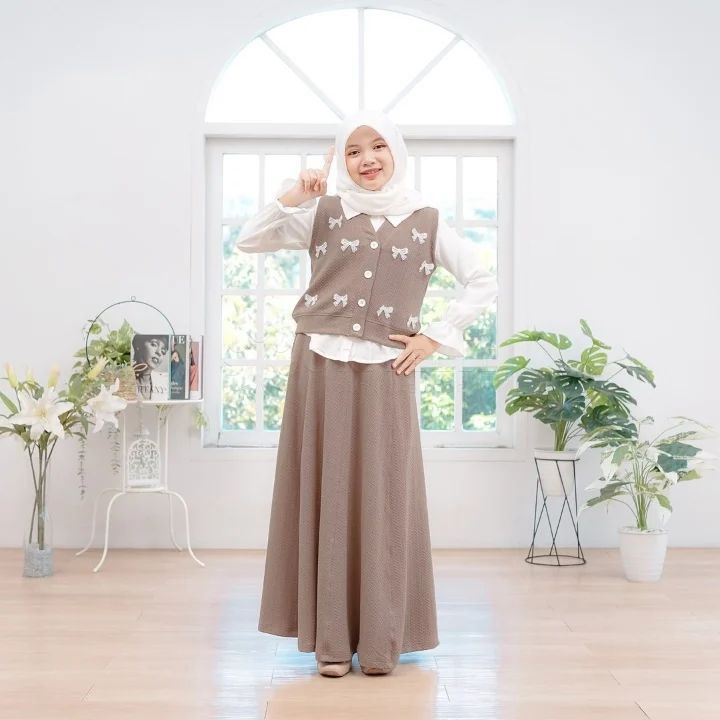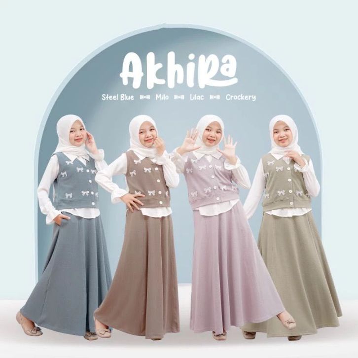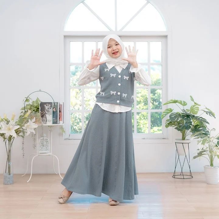 Akhira Set Kids 3in1 Setelan Rok Anak Perempuan Usia 8 9 10 11 12 Tahun One Set Anak Tanggung Bahan knit Florencia Mix L