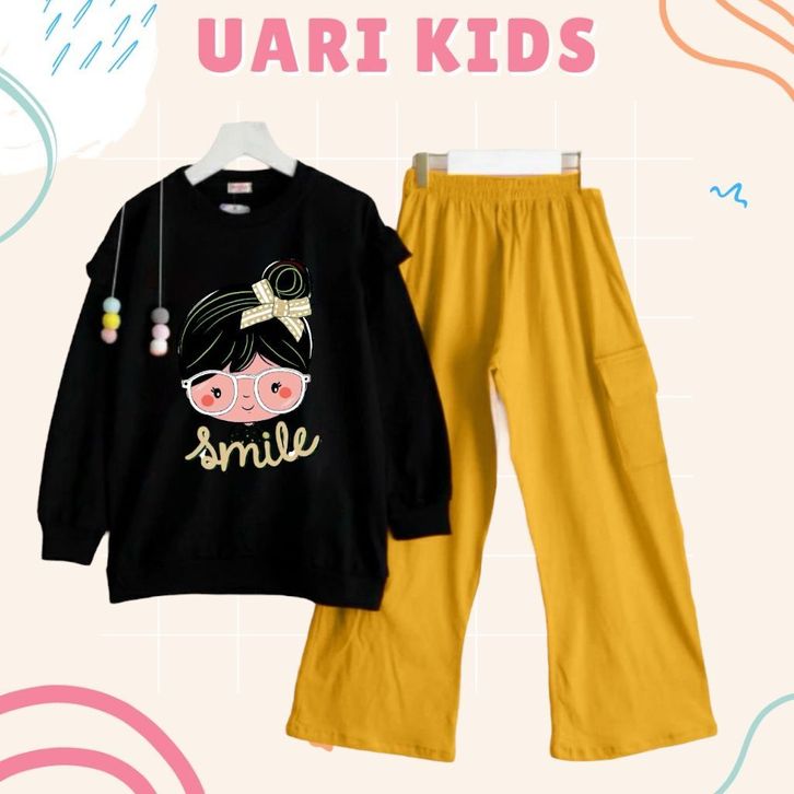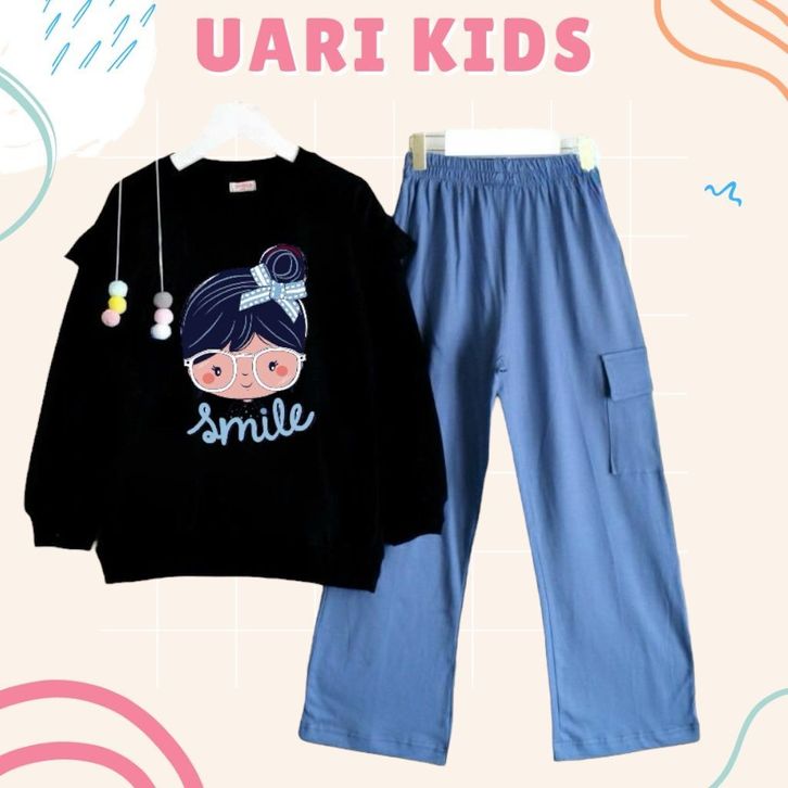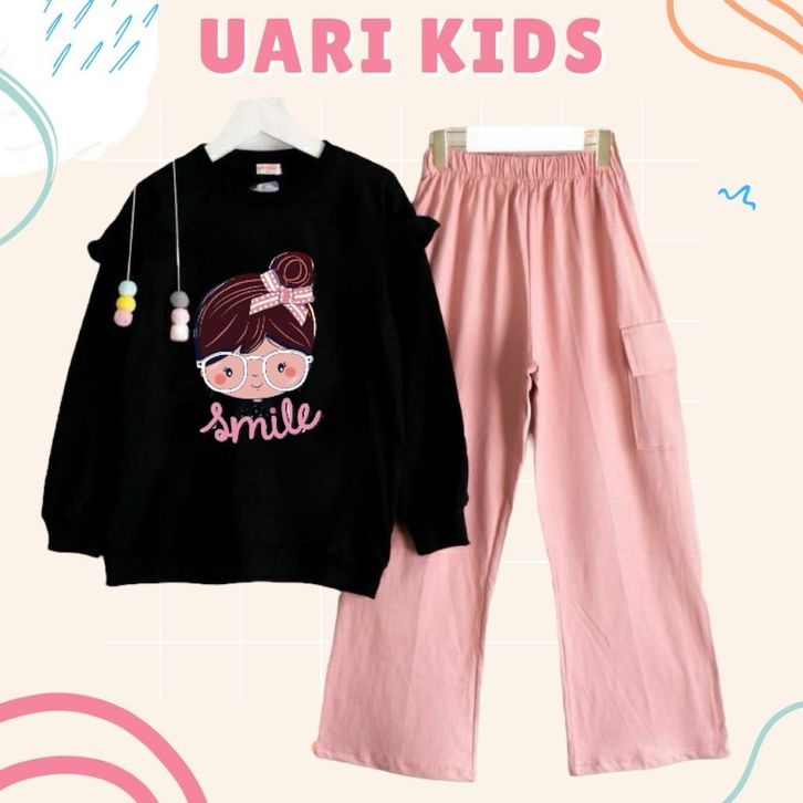 SMILE SET KIDS (3THN-13THN) CELANA CARGO CRINKLE PRINTING // SETELAN SMILE // ONE SET ANAK REMAJA // SETELAN ANAK KEKINI