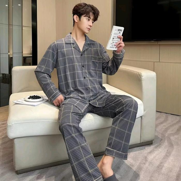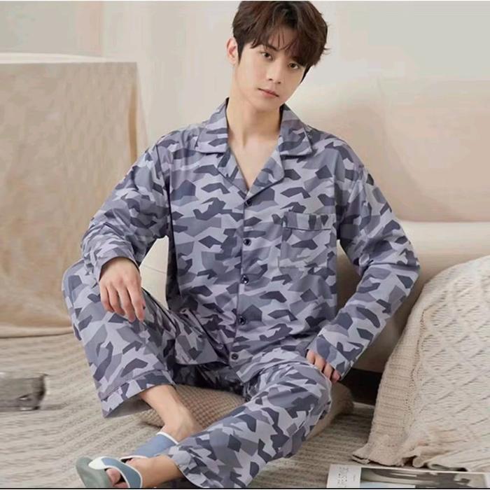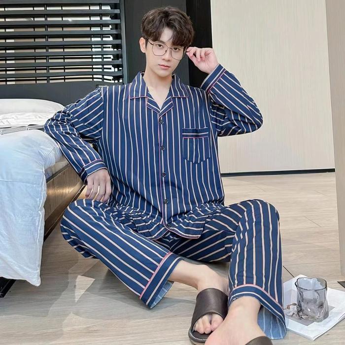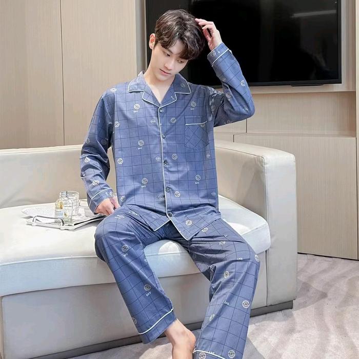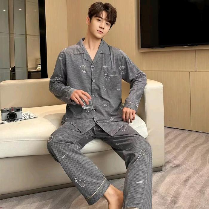 (L-4XL) piyama pria lengan pendek celana panjang baju tidur cowok