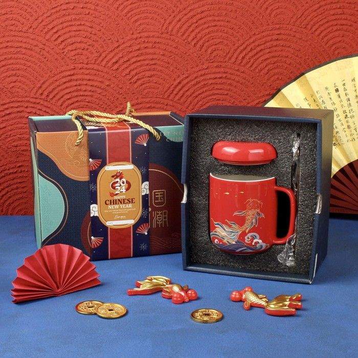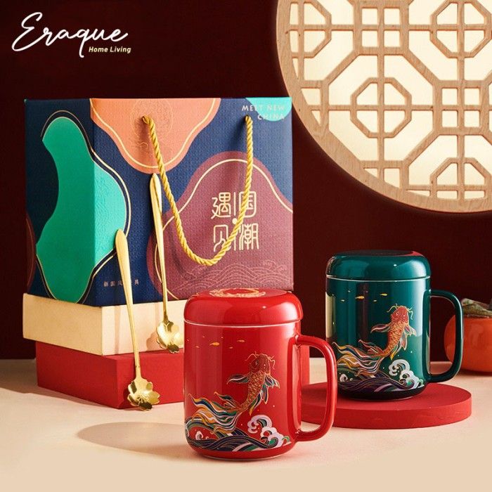 Koi Mug Gift Set / Hampers Gelas Mug Keramik Ikan Koi Imlek CNY Mewah