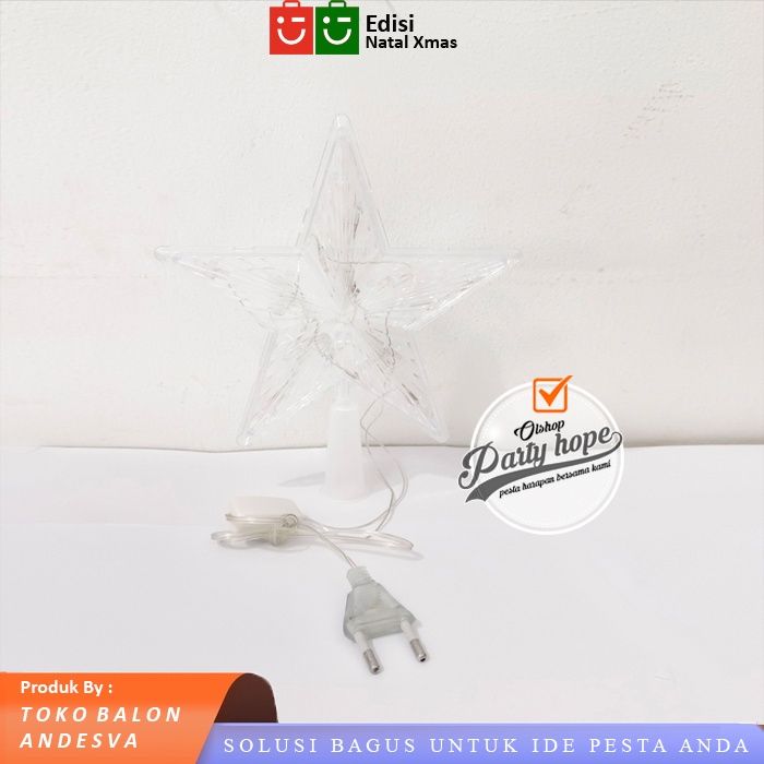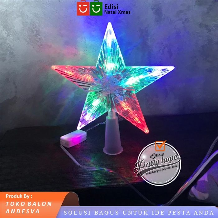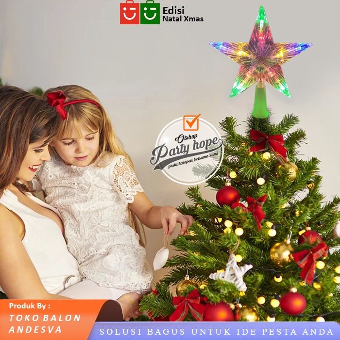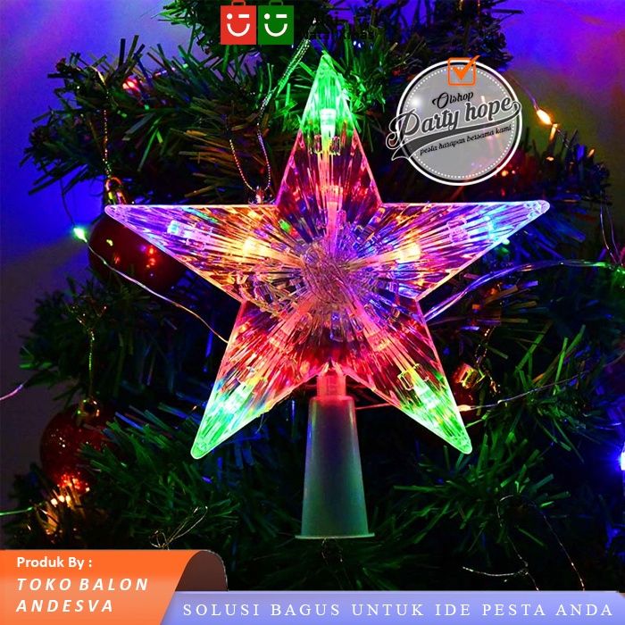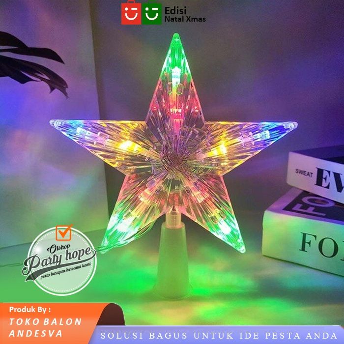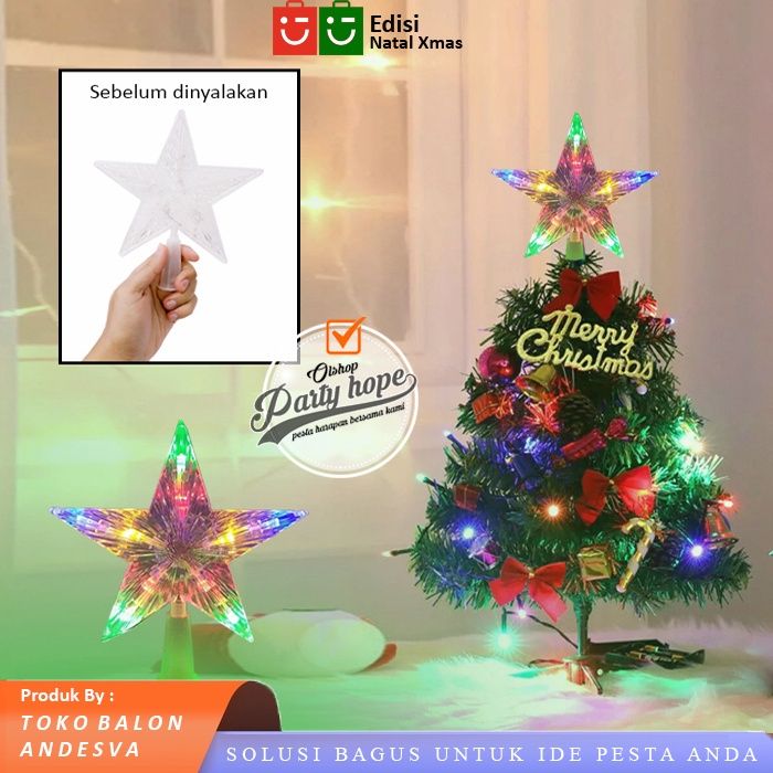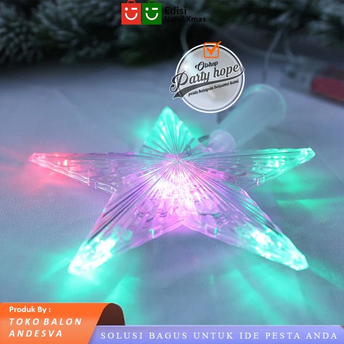 Bintang pohon natal LED besar Hiasan top star dekorasi pucuk pohon natal glitter