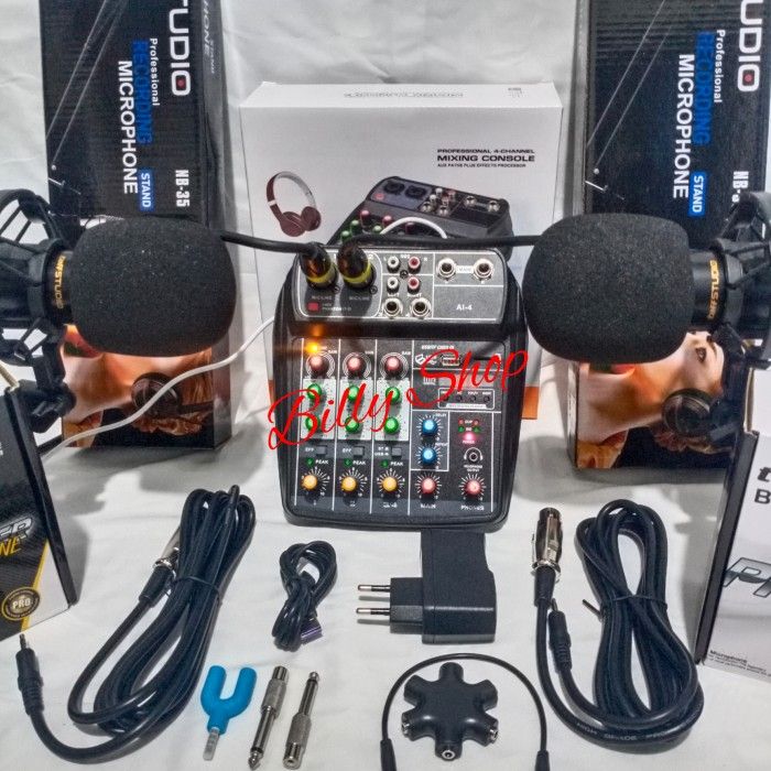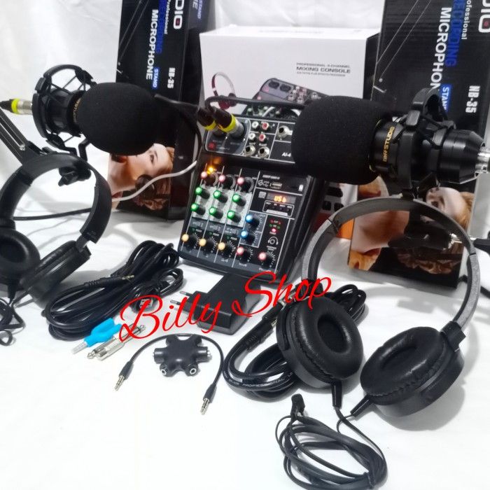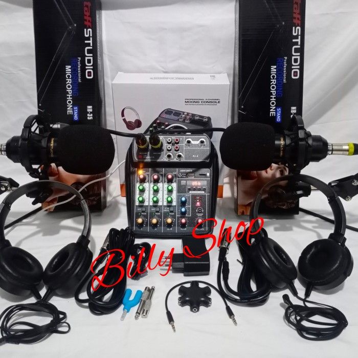 Paket Podcast/Soundcart Mixer Mixing 2 Mic Bm 800 2 Orang Plus Headset