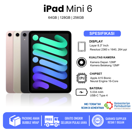 Tablet iPad Mini 6 Mini 5 Mini 4 Mini 3 Mini 2 16GB - 128GB Second Fullset Wifi Only Likenew Garansi