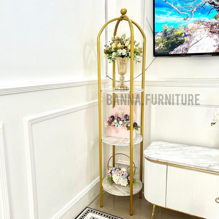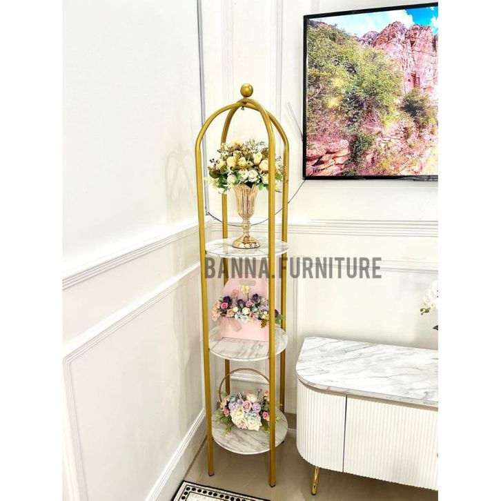 Rak Sudut Ruangan Minimalis Sangkar Burung Gold Serbaguna Aesthetic