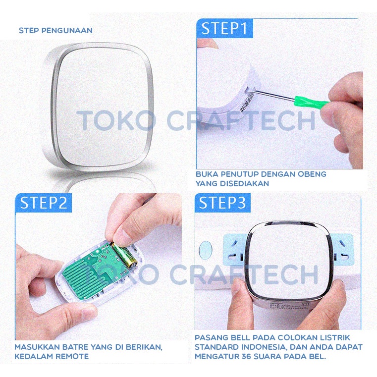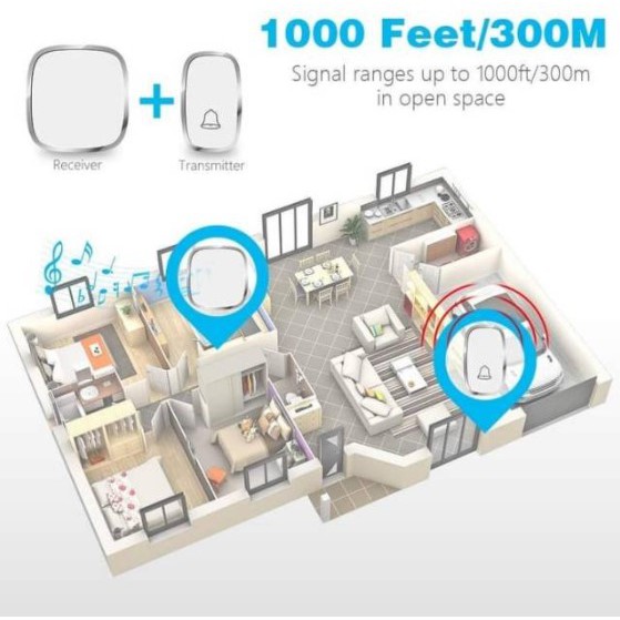 [SALE] Bel Rumah 300M IP44 Wireless Anti Air [Bisa Pilih Musik] Waterproof Door Bell Pintu