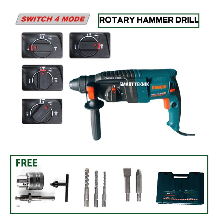 [Star] [BONCHI/RSK 2-26] Mesin Bor Rotary Hammer Drill 3 Fungsi – Bor Bobok Beton Profesional Sekelas BOSCH