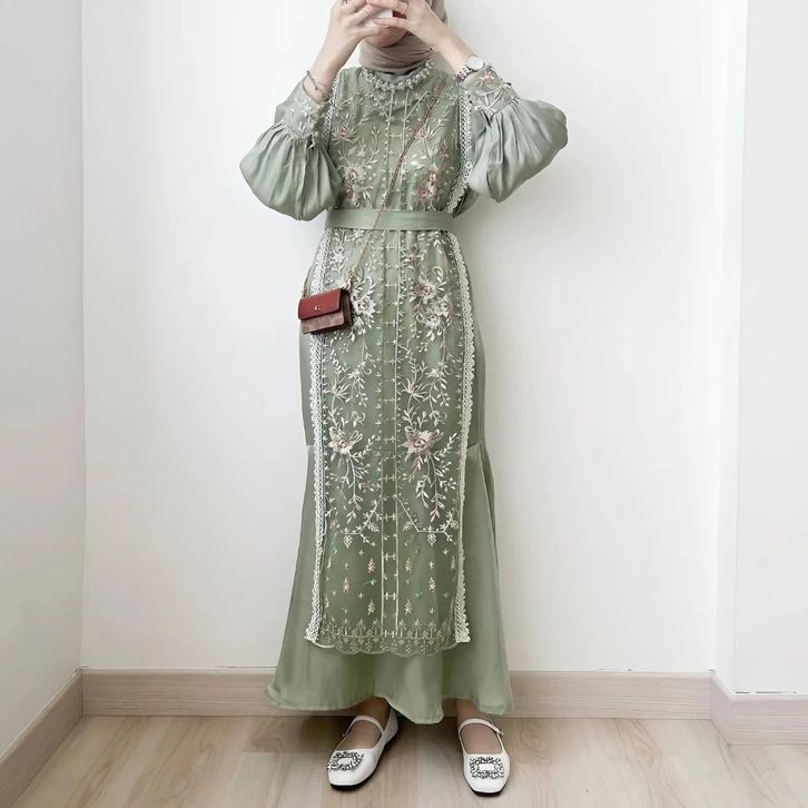 DEMEN OUTFIT - Adinda Dress - Bahan Armany Silk Premium Mix Brukat Size M L XL XXL / Baju Kondangan Pesta Wanita / Baju