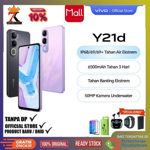 [Official Store✔] Vivo Y21d 6+6/256GB - IP68/69/69+ Tahan Air Ekstrem, 6500mAh Tahan 3 Hari, 50MP Kamera, Dual Speaker