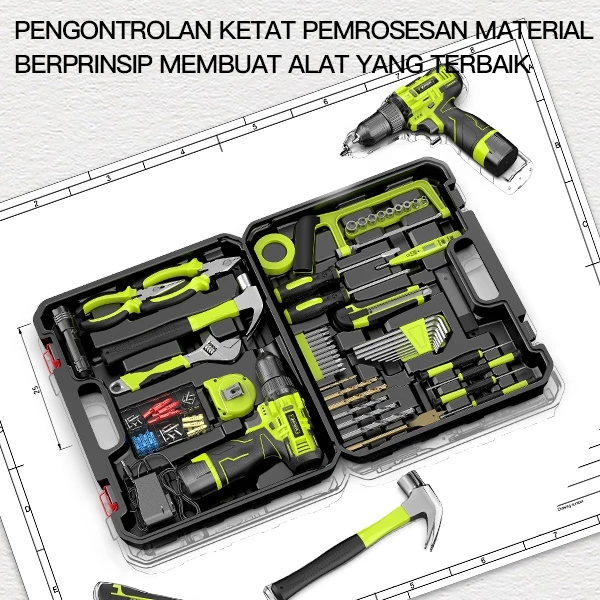 ZPER Satu Set Alat Perkakas Bor Listrik Cordless Tang Obeng Palu Kunci Pas Toolkit 124 in1 pcs ZP027