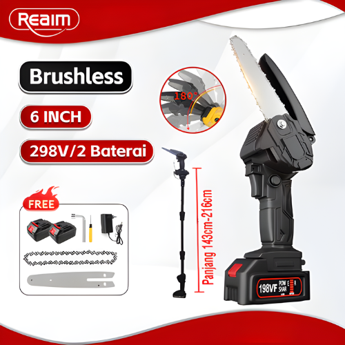 MESIN POTONG KAYU REAIM 4 INCH BRUSHLESS PEGANGAN CHAINSAW CORDLESS MINI PORTABLE ELECTRIC MURAH