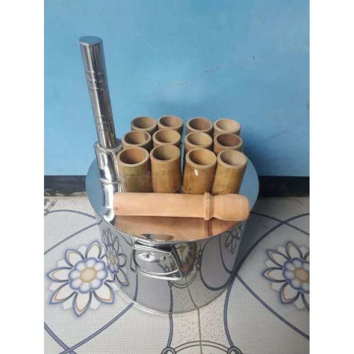 Promo dandang uap kue putu ukuran 2020 cm lubang 6 + cetakan bambu 12pcs