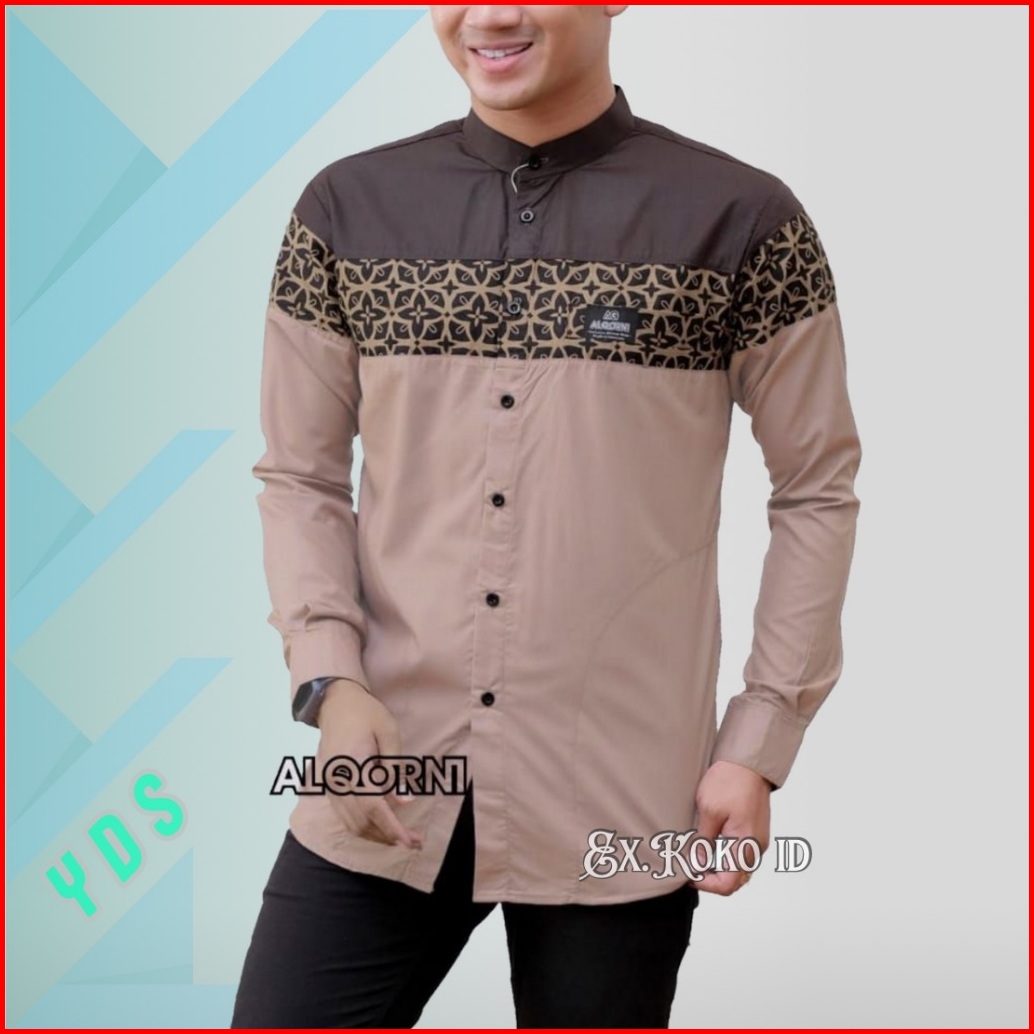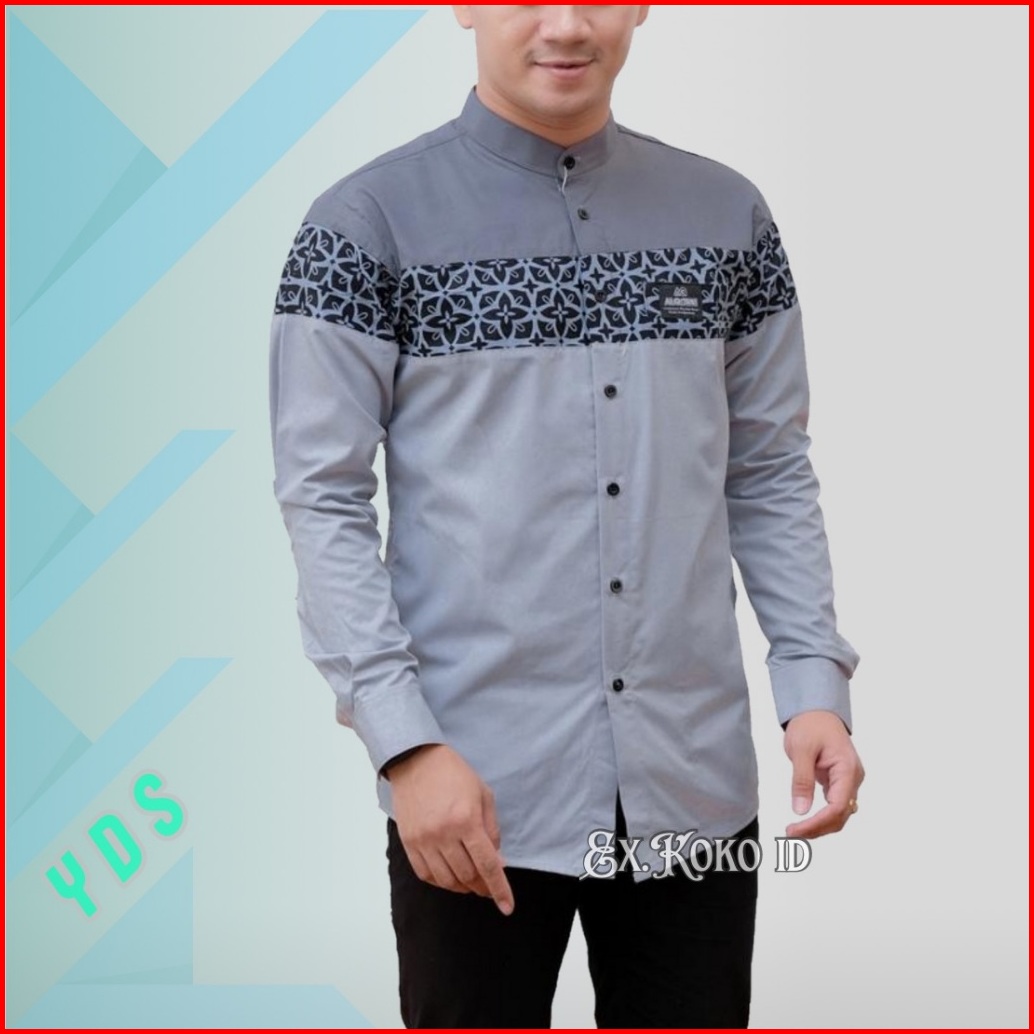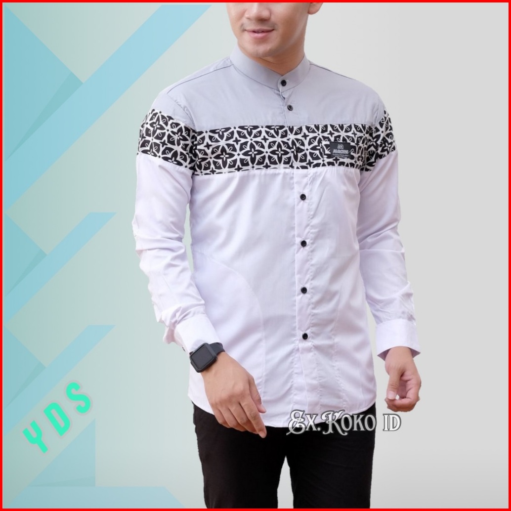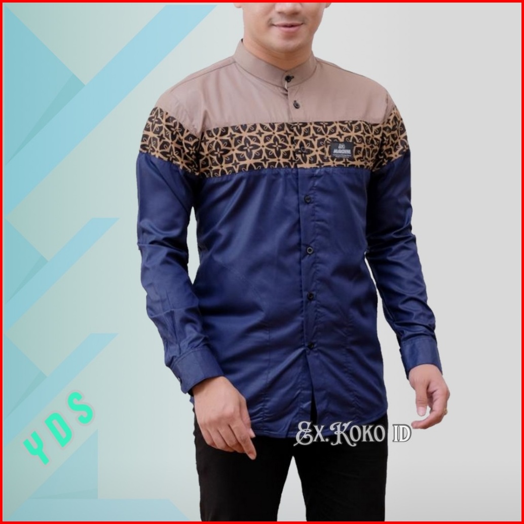 Baju Koko - Baju Koko Pria - Koko Lengan Panjang Kombinasi Batik Bahan Katun Toyobo Premium