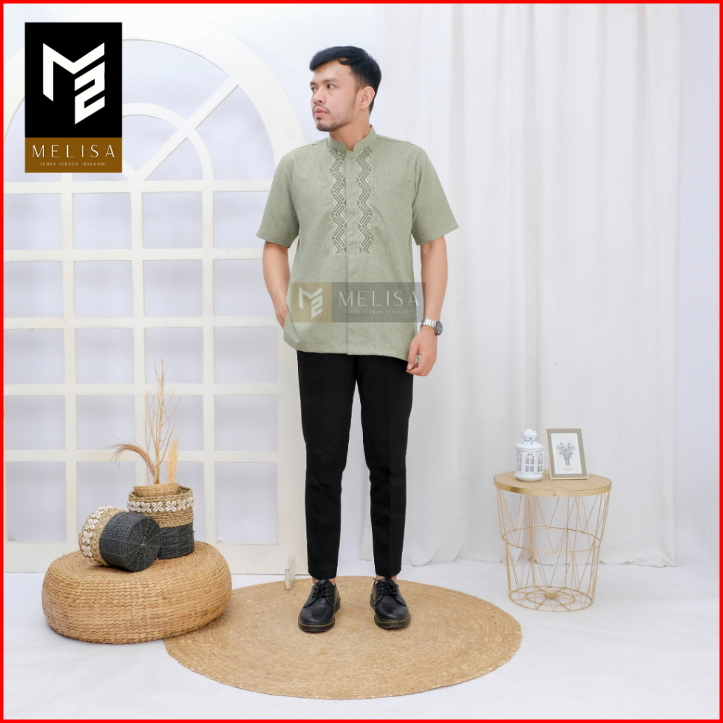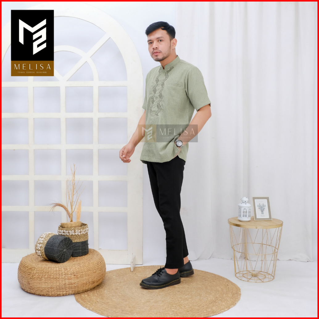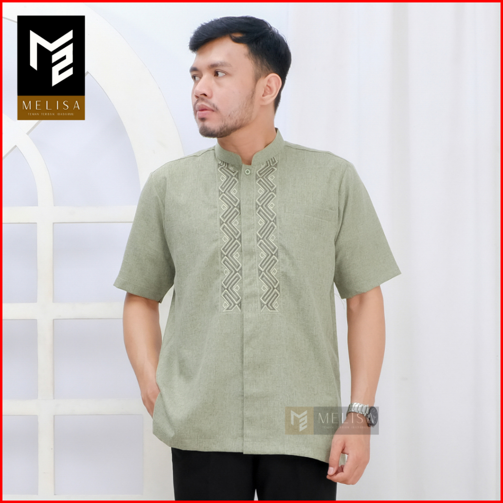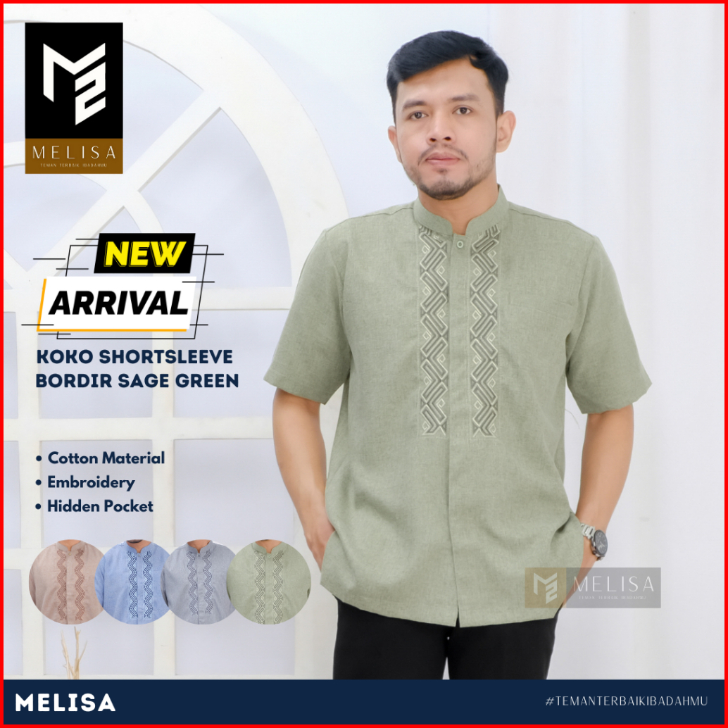 Baju Koko Pria Kemko Lengan Pendek Bahan Katun Madinah Size M L Xl Motip Bordir Warna Sage