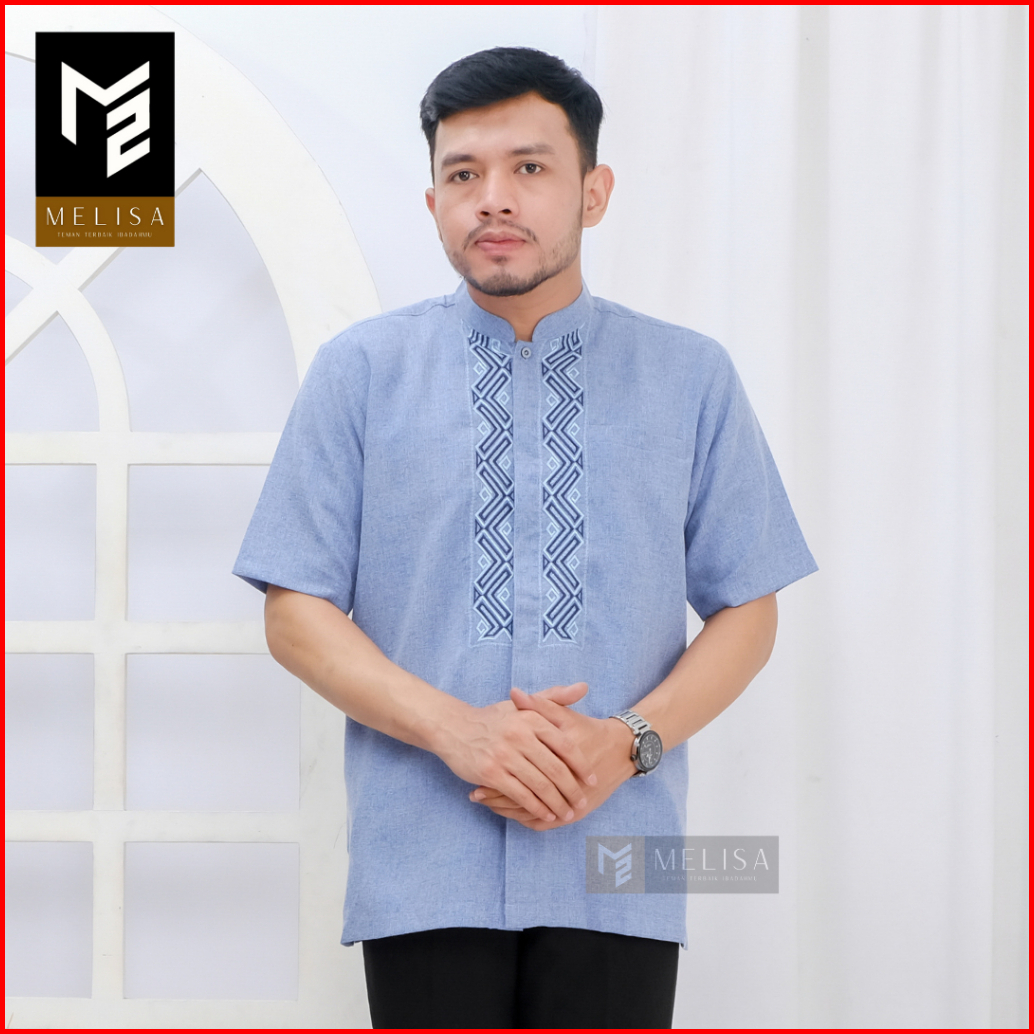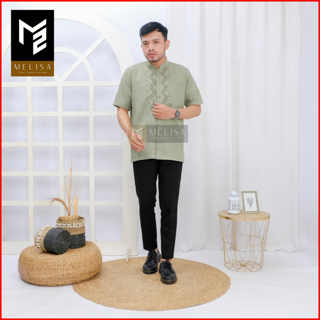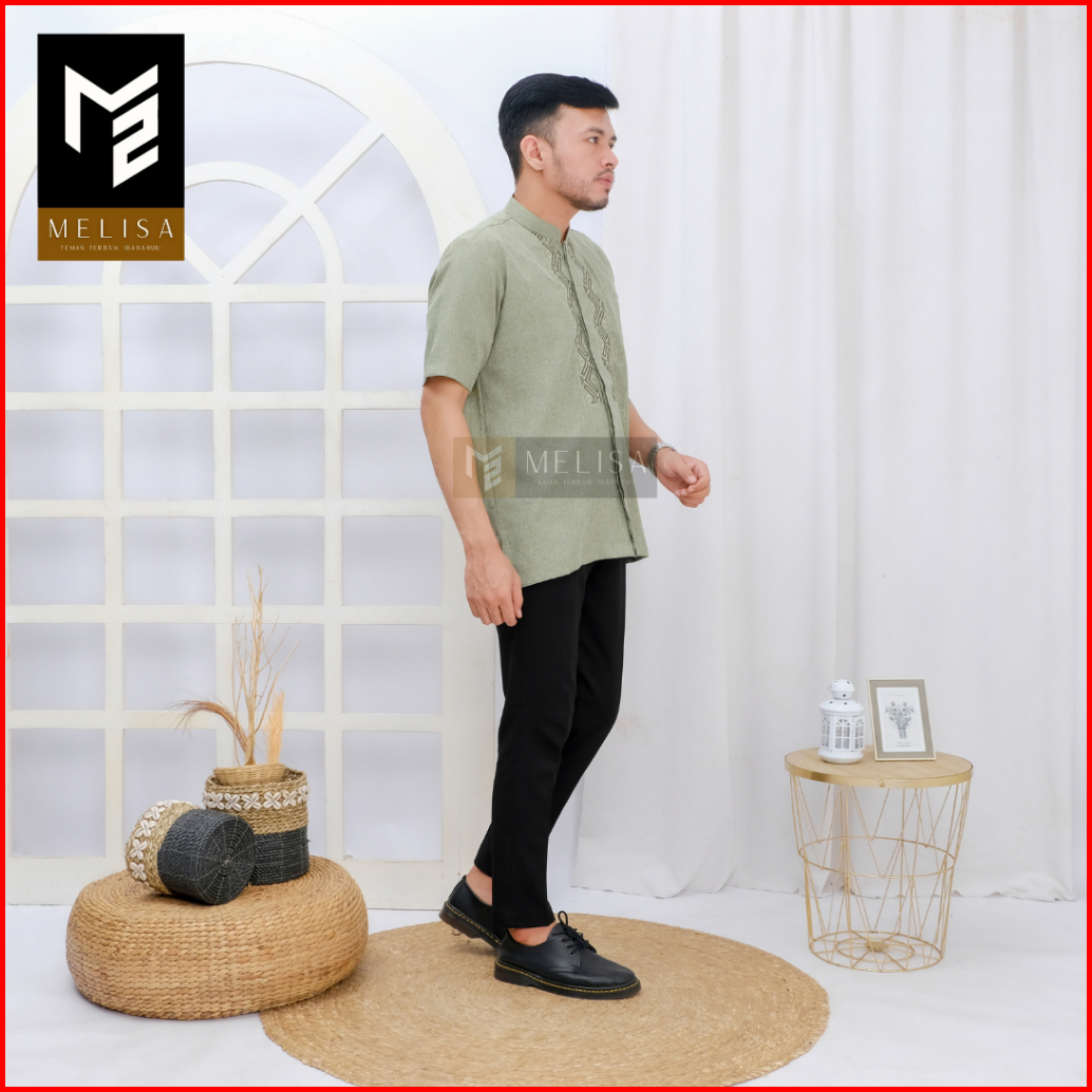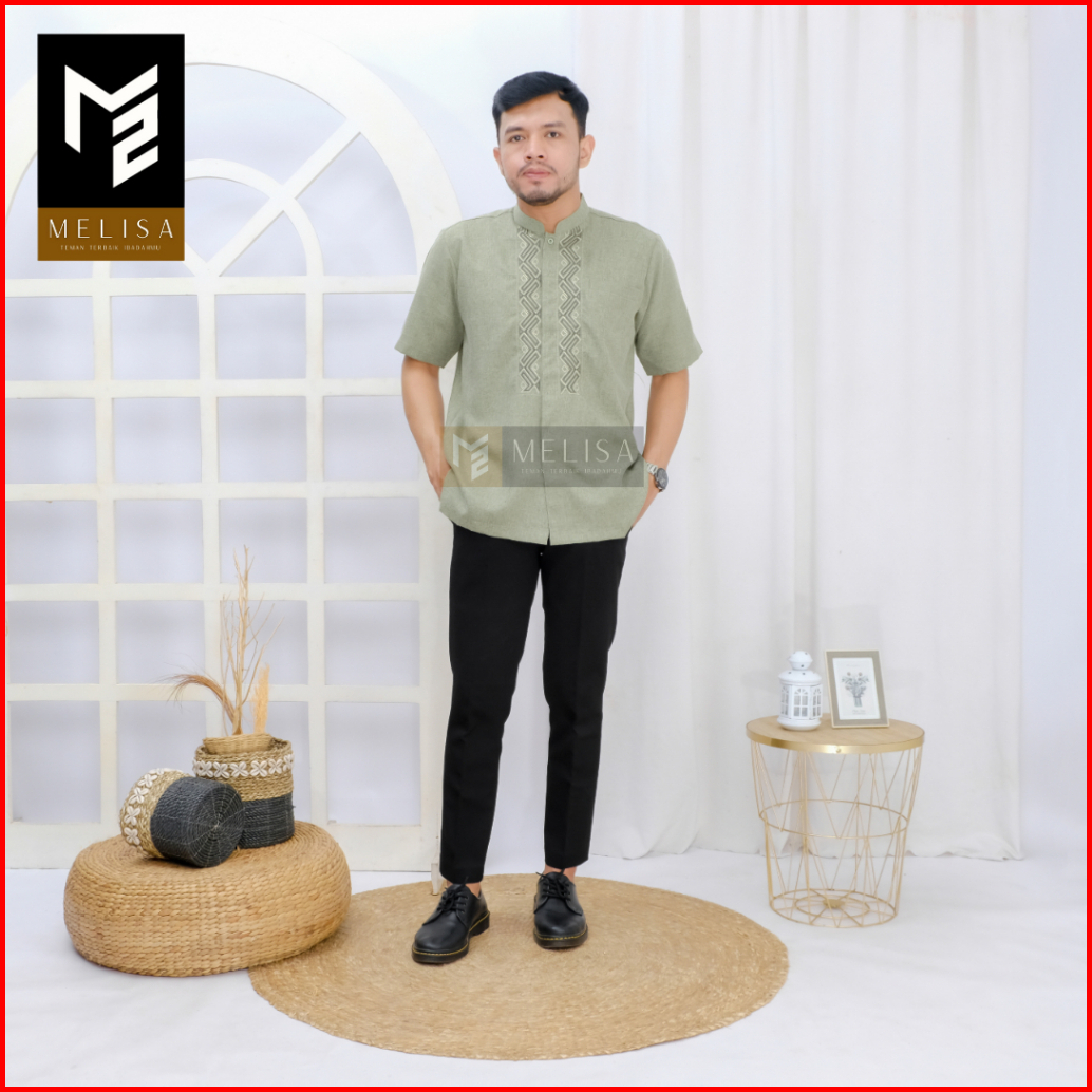 Baju Koko Pria Kemko Lengan Pendek Bahan Katun Madinah Size M L Xl Motip Bordir Warna Sage