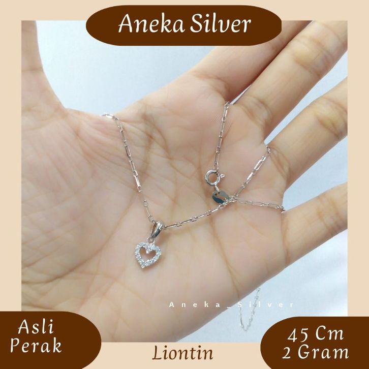 Kalungg Paper Clip + Lontin Cor Mata Variasi, Sepuh Ems Putih, Perak 925