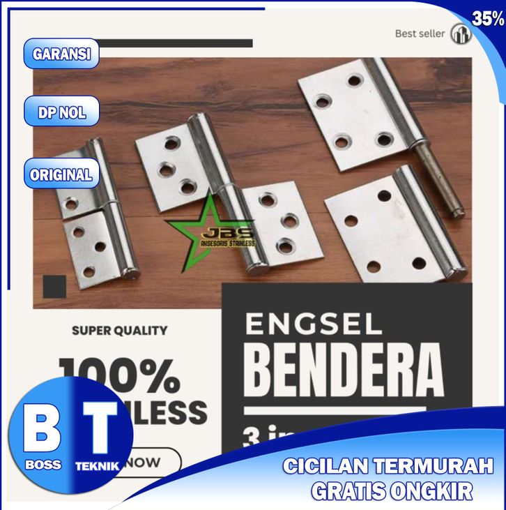 LEBARAN Engsel Bendera Cabut 3" INCH (1 Pasang) Stainless - Engsel Pintu Bongkar Pasang Lipat - Engsel Pintu / Jendela