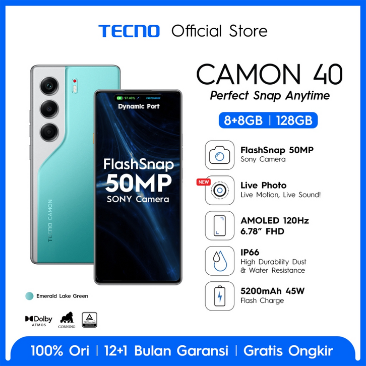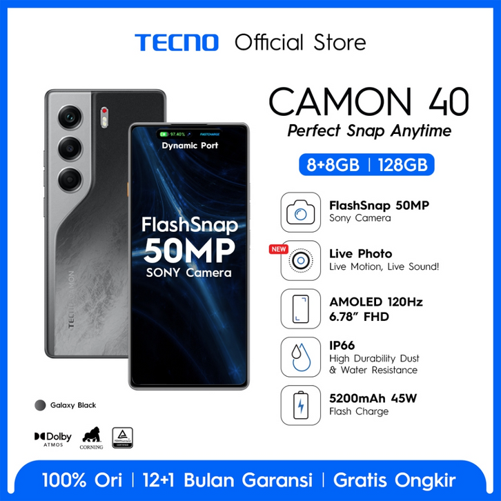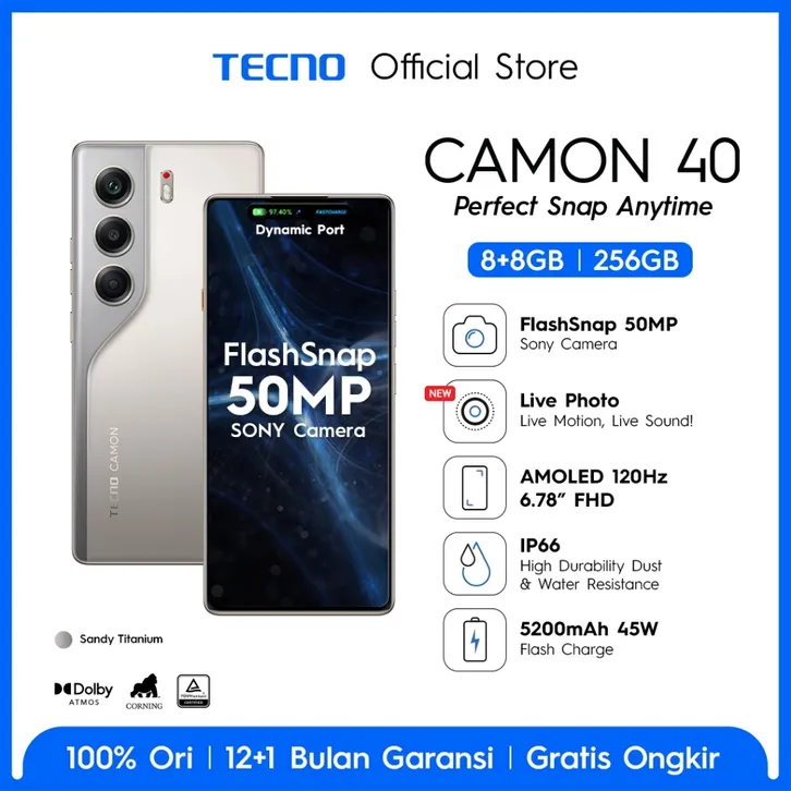 [Mall] HP TECNO CAMON 40 8GB/128-256GB MediaTek D7300 Ultimate 7000mAh 144Hz HAPE Murah RAM Besar Tanpa DP Terbaru2026