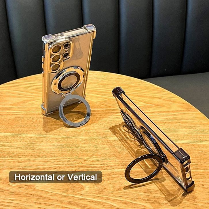 CrashStar With Lens Films MagSafe Stand Airbag Anti-fall Plating Clear Hard Phone Case For Samsung Galaxy S25 Ultra S25+