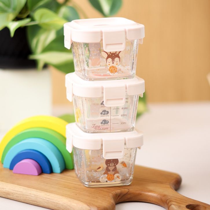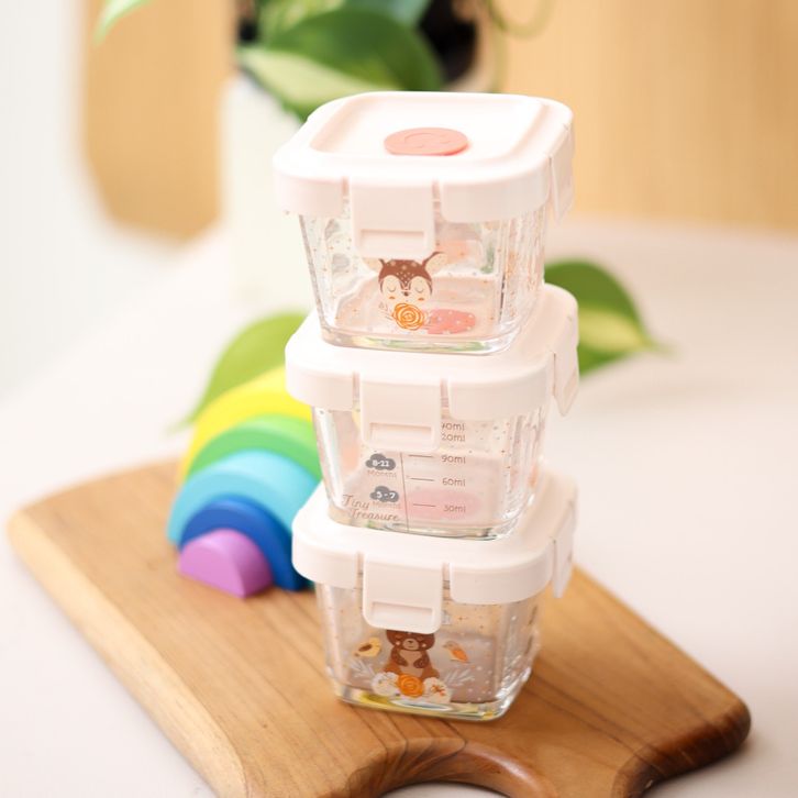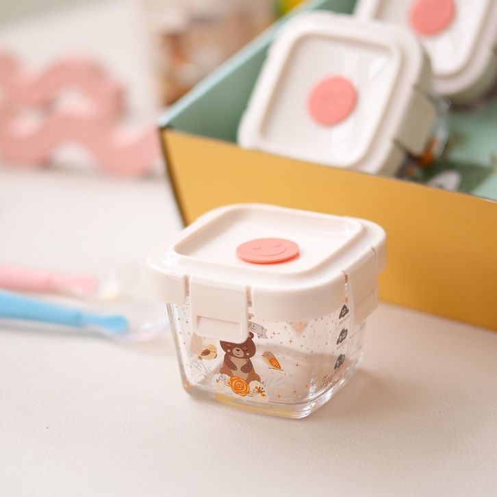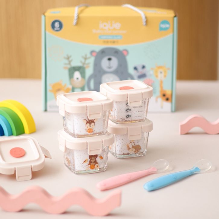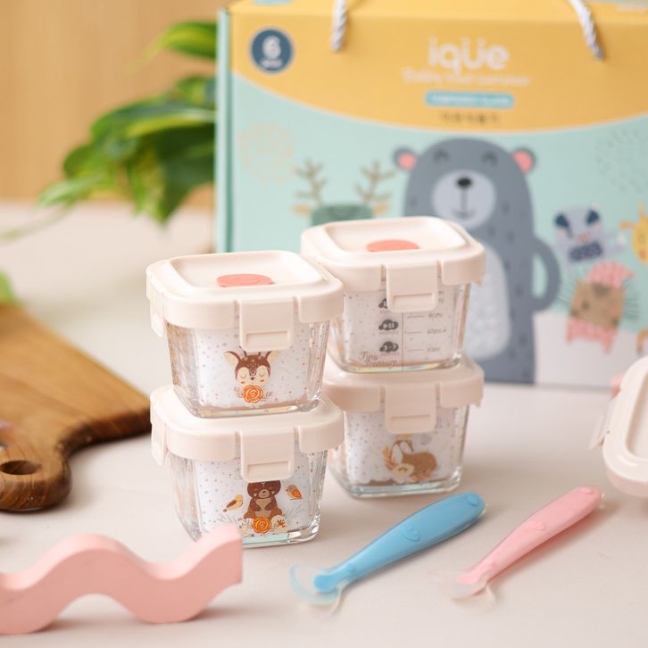 Tempat Mpasi Kaca 6 in 1 & 4 in 1 Set Kado Lahiran Bayi + Sendok Mpasi Silicon Bayi / Hampers Baby Gift Set